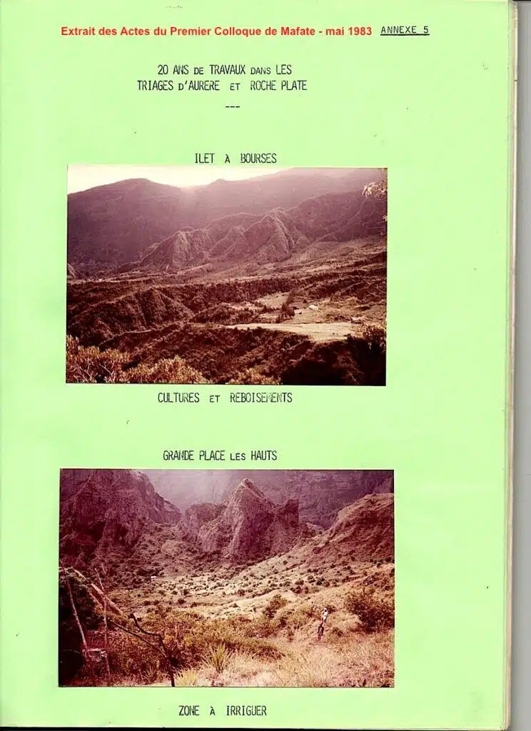 J’ai souhaité ici présenter quelques lignes de l’introduction de ce Colloque plaidant en faveur de la politique poursuivie par les autorités forestières, tant en ce qui concerne le reboisement du cirque que la gestion de sa population… le perpétuel serpent de mer des forestiers à Mafate.