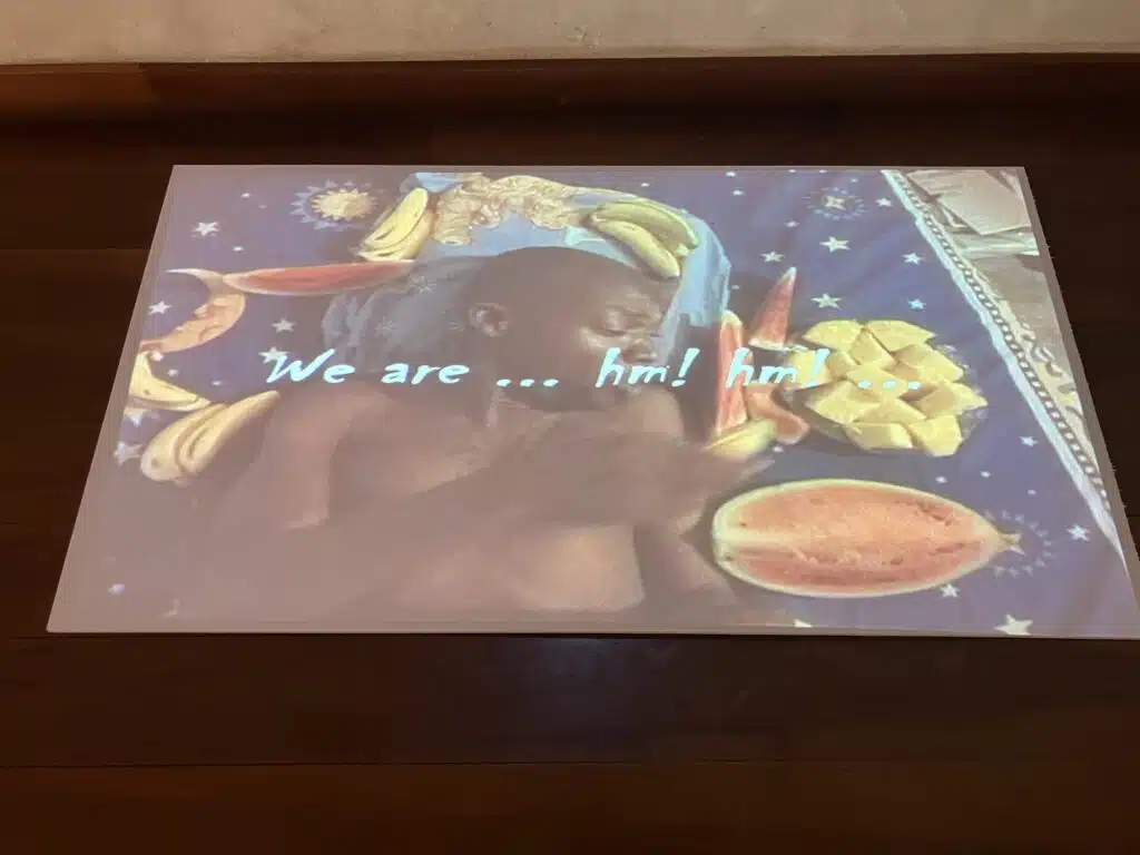 Enfin, avec la vidéo « We are the world / La Rak mon papa », Magalie Grondin propose une réinterprétation de l’œuvre éponyme de Goddy Leye (We are the world, 2006), qu’elle inscrit dans le contexte de La Réunion et de son économie sucrière. Un dialogue en vidéo à forte portée politique qui vient clôturer cette litanie de l’exil avec gravité et cynisme, et non sans humour, en mettant en scène les deux artistes qui chantent la célèbre chanson caritative de la fin du XXème siècle, l’un en dévorant goulument une multitude de fruits et l’autre en ingurgitant une pleine bouteille de rhum Charrette, allusion aux problèmes d’alcoolisme qui est l’un des fléaux de notre île à sucre. Toujours plus de cannes, toujours plus de sucre ! Toujours plus de rhum vendu à un prix dérisoire, à la portée de toutes les bourses, et notamment de celles des hommes qui, comme dit Monsieur Grondin, « restent devant la boutik juskatan ki mèr. Y a rien à faire. (…) Kan le boug i bwar, larjan i rant pa dan la kaz, dan le ménaj »12. « Héritage direct de l’esclavage, c’est encore la mère qui, de nos jours, s’occupe principalement de l’éducation dans beaucoup de familles réunionnaises : cela n’est pas sans conséquences dans la place que peut prendre le père »13. Une démolition inexorable, —programmée elle aussi ? qui contribue à la longue destitution de la figure paternelle, commencée à la période de la colonisation14, avec entre autres séquelles les violences intrafamiliales. « We are the children » dans l’attente des sauveurs ? pères de substitution, pères de la nation, Docteur Papa15, Papa Debré, Papa le maire… des « archi-pères », élus de la république, ayant « dans un climat tendu face à l’emploi le pouvoir de distribuer des contrats en fonction des besoins électoraux »16.