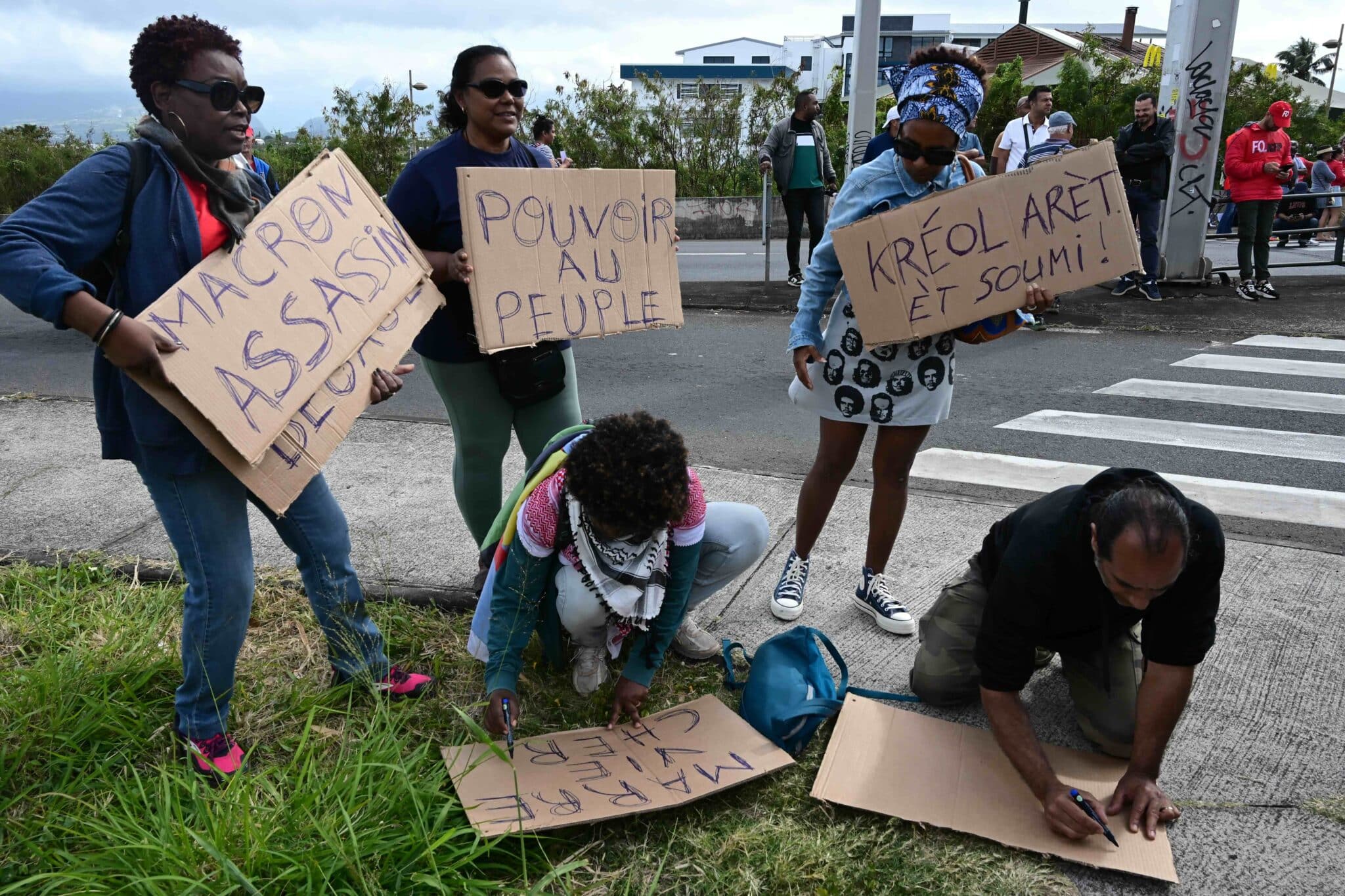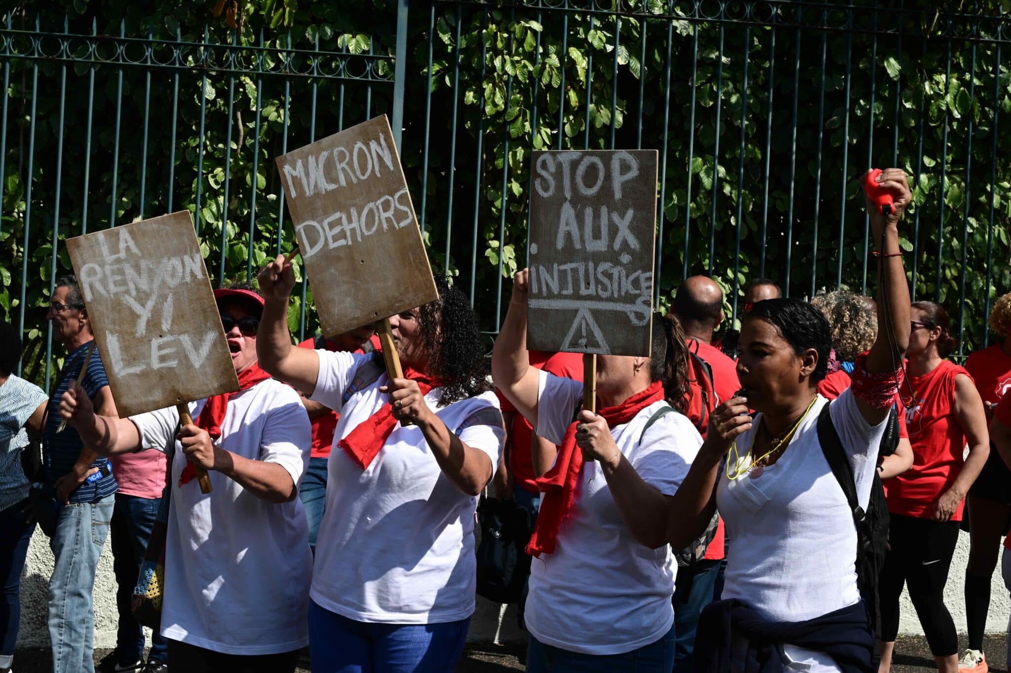Dès 5h00 ce matin du 10 septembre, les militants les plus organisés ont planté leur piquet sur le rond-point Canabady (Macdo) de Saint-Pierre. La troupe s’est peu à peu étoffée jusqu’à atteindre une grosse centaine de personnes. Si bien que, contrairement à ce qui était programmé, ils n’ont pas rejoint la mobilisation de l’intersyndicale réunie devant la sous-préfecture du Sud. Mais c’est cette dernière qui les a rejoint sur le boulevard Bank pour grossir les rangs.