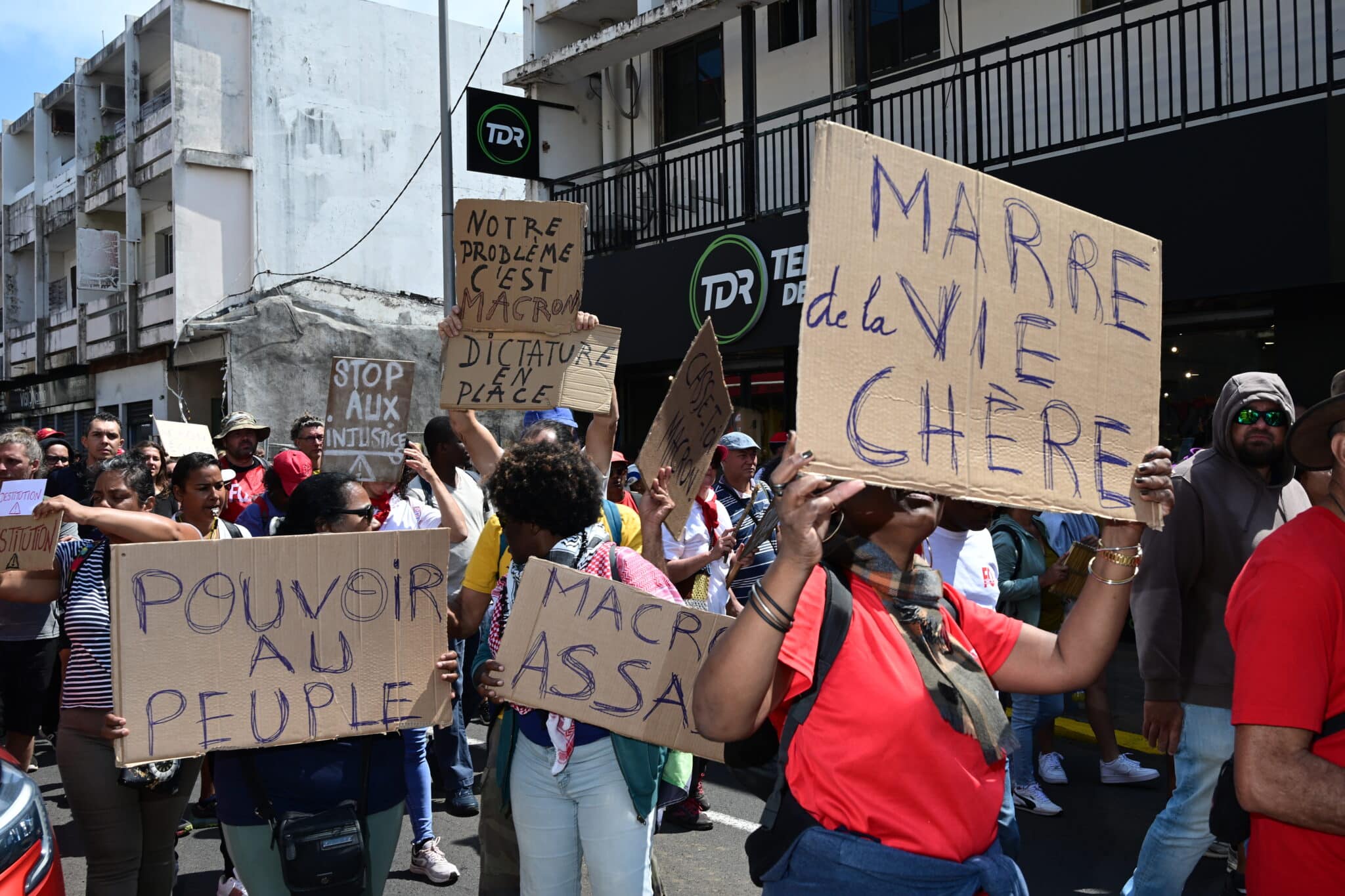 Pas grand-monde dans les rues de Saint-Pierre ce 10 septembre. S’agit-il d’un « boycott » participant au mouvement « Bloquons tout » ou de la peur des embouteillages annoncés ? En tout cas près de 200 manifestants ont déambulé joyeusement dans les rues en scandant « Macron démission ».