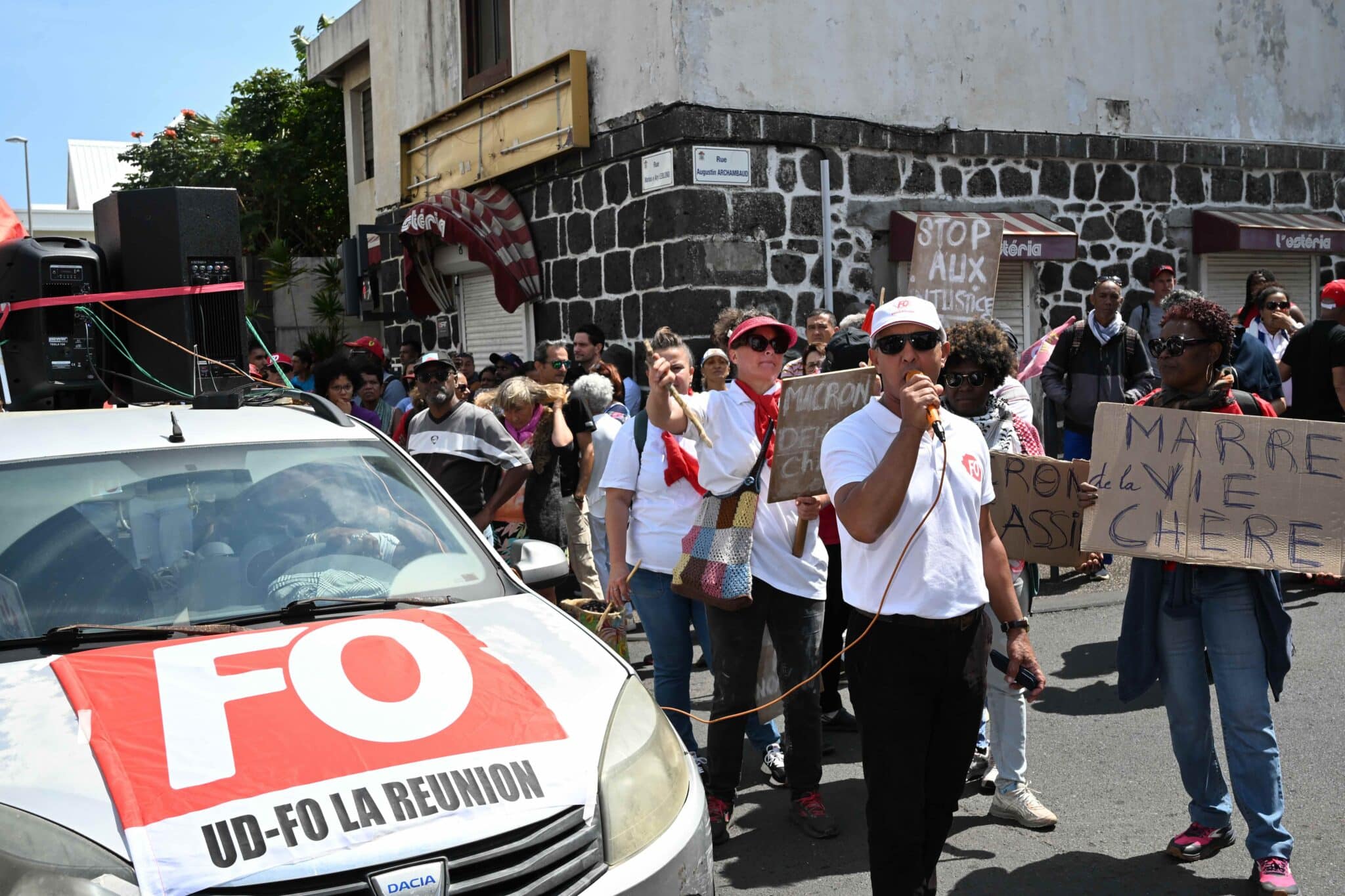 S’en est suivie une déambulation festive dans les rues de Saint-Pierre. On reconnaît dans le cortège les syndiqués de FO, de la CGTR, de la FSU… aux côtés des militants d’Attac. Seul « politique », Alexis Chaussalet se présente plus comme citoyen qu’au nom de la France insoumise.