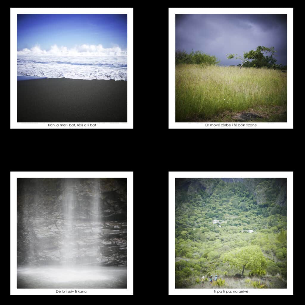 Chaque photo est accompagnée d’un proverbe réunionnais minutieusement choisi “ Les proverbes en créole ont parfois cette dimension lourde, de part l’histoire de la Réunion. J’ai choisi des proverbes qui donnent un message d’espoir qui nous tire vers le haut”.