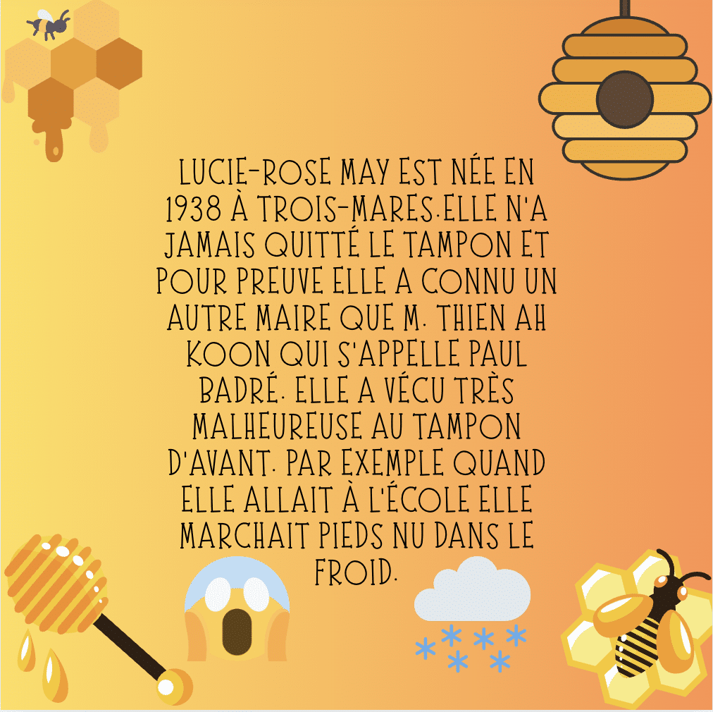 À l’occasion des 100 ans de la commune du Tampon, les apprentis journalistes de l’atelier journalisme du collège de la Chatoire ont interviewé Lucie Nayagom, résidente des habitats inclusifs de La Ruche. Elle leur a confié des souvenirs de sa vie et partagé son regard sur l’évolution du Tampon au fil des années.