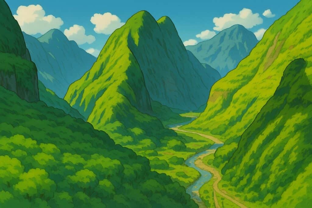 Mais vas-y, montre-la dans ton article, ton image de vallée verdoyante sauce Totoro. Écris que “même quand on ne cite pas Miyazaki, on peut très bien l’invoquer par la bande”. Tu fais un petit encadré avec “l’esthétique Ghibli sans enfreindre le copyright”, et bam : tu passes pour un expert.