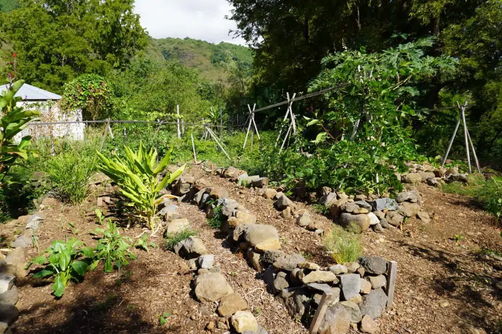 « Ici, nous, le bio, on s’en fout », lâche Coralie Hoarau. « Ca devrait être naturel pour tout le monde de ne pas mettre d’engrais, de restaurer le sol. Dans les Jardins de Fond Imar, on se rapprocherait plutôt du label Démeter qui est le label de la biodynamie. La biodynamie part du principe qu’une exploitation agricole ne doit pas importer d’engrais, de graines, de nourriture animale ou humaine. Tout est fabriqué sur place donc on doit réfléchir différemment les parcelles. On est loin d’une vision productiviste. »