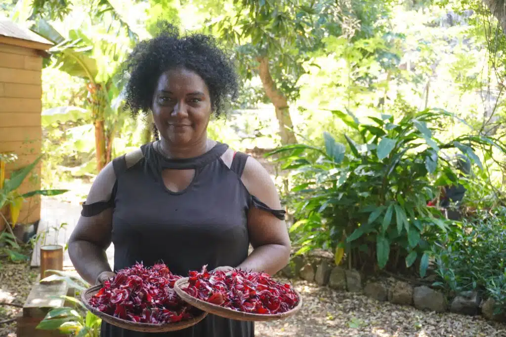 Même si elle a grandi avec des parents agriculteurs, Coralie Hoarau a du tout réapprendre elle-même. C’est une ancienne architecte reconvertie après quinze ans d’activités. « Ma famille ne m’avait jamais vu une gratte à la main, donc certains pensaient que je ne pouvais pas planter. Quand j’étais enfant, mes parents étaient très complémentaires. Mon père avait vraiment l’esprit paysan alors que ma mère aimait plutôt les tisanes, les orchidées… »