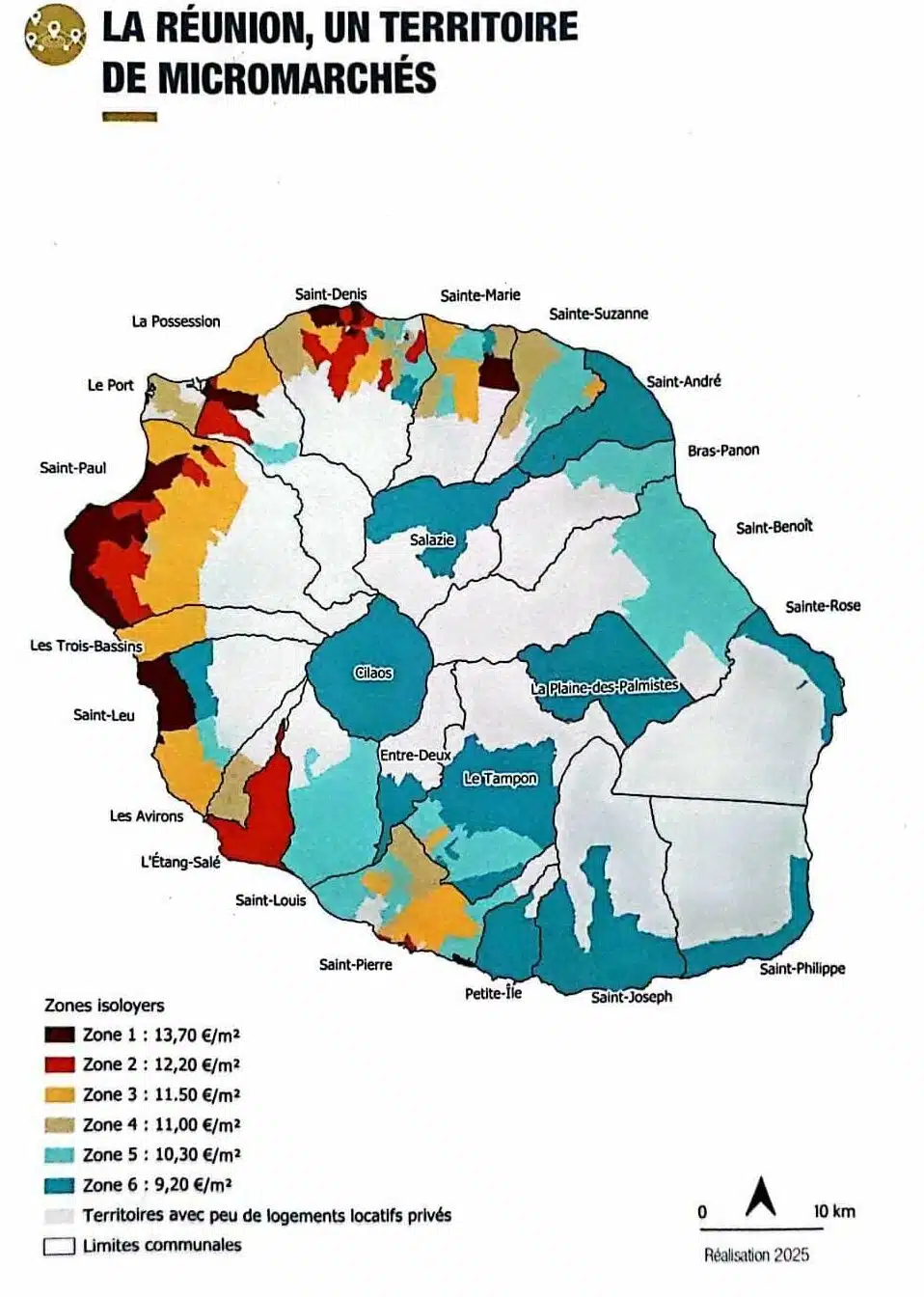 Ces zones s’inscrivent dans une réalité globale du territoire : les loyers réunionnais sont bien inférieurs à ceux de Paris, mais comparables à ceux de grandes ou moyennes agglomérations. Simplement pour comparer, en termes de niveaux de loyers, le Territoire de l’Ouest est équivalent à Bordeaux, la Cinor est comparable à Lille, la Civis aux Sables-d’Olonne, la Casud à Arles et la Cirest à Auray.
