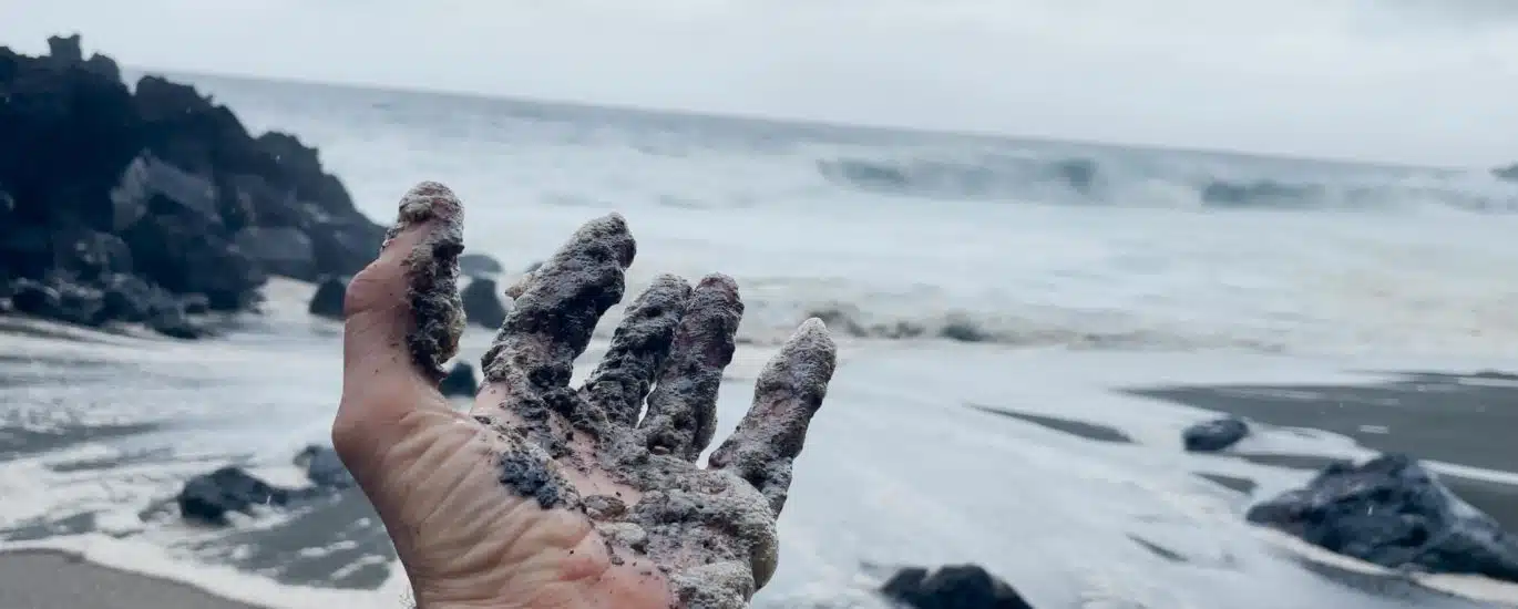 En dehors des boulettes en nombre très faible sur la plage de l’Anse des Cascades, il n’y a plus de pollution en mer. Sur le rivage vous pouvez voir un petit panache marron dans l’écume mais ce sont des sédiments, ni gras, ni odorants.