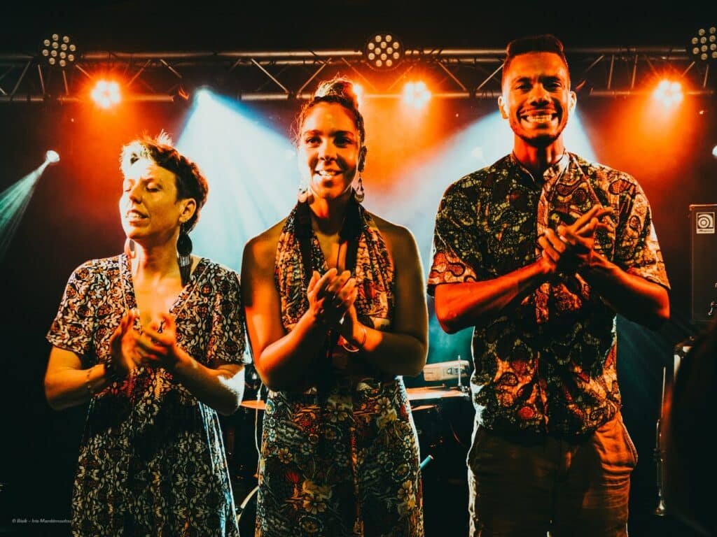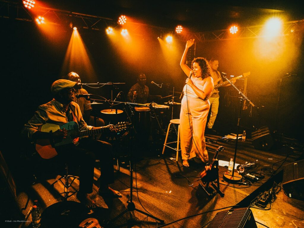 C’est a cappella, et au plus proche du public que le voyage commence avec “Mi Pans Aou”, des harmonies apaisantes et des mots doux résonnent aux claquement des mains sur un rythme asymétrique : “Mi pans aou kom bambou i pans dési la rivièr…”, une première carte postale de cette artiste incroyable pour une aventure aux racines profondes de notre héritage.