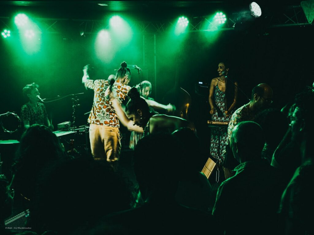 Cette grande famille recomposée, s’éloigne alors de la scène, fendant le public jusqu’au fond de la salle en emportant avec eux les kayambs toujours battants. Comme un cœur apaisé après l’intensité du voyage, le groupe glisse et s’efface sur les dernières notes de bonheur pour ne laisser la place qu’à de merveilleux souvenirs…