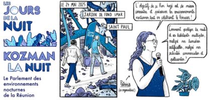 La bande dessinée reportage réalisée par Alex Meley s’inscrit dans la dynamique de Kozman la nuit – le parlement des environnements nocturnes à La Réunion. Elle revient sur