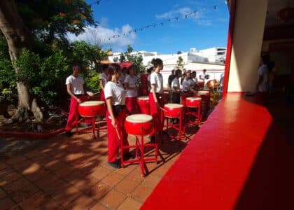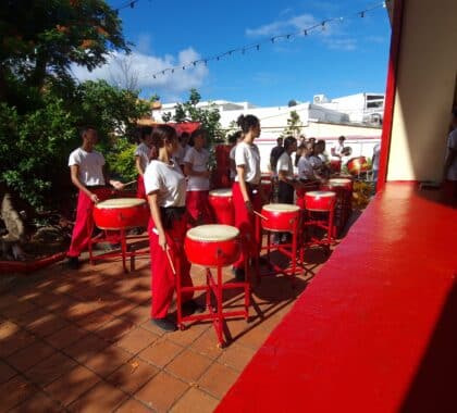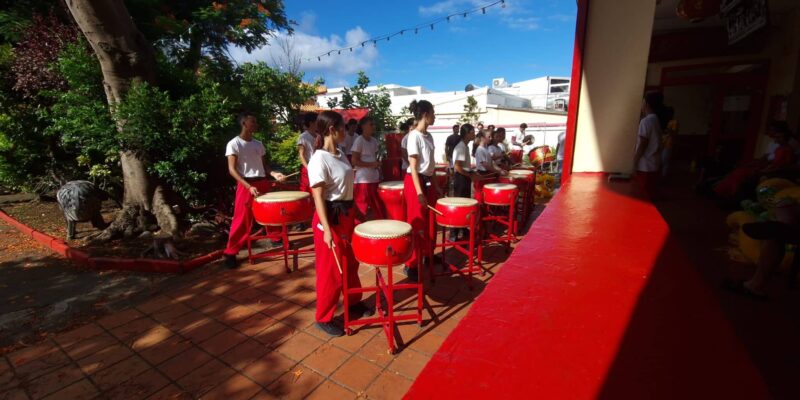 Les tambours résonnent, rue Sainte-Anne, dans le temple dionysien Saï Tsiong Tong . De féroces silhouettes avancent et bougent au rythme des percussions. Les jeunes de l’association Qi Lin répètent…