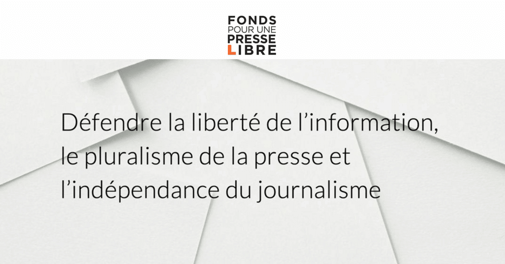 Il s’agit d’un organisme à but non lucratif qui défend le pluralisme de l’information et l’indépendance du journalisme. Sa mission est d’accompagner et de soutenir les médias indépendants dans la recherche de leur propre modèle économique afin de développer un écosystème pérenne, solidaire et dynamique. (Source : https://fondspresselibre.org)