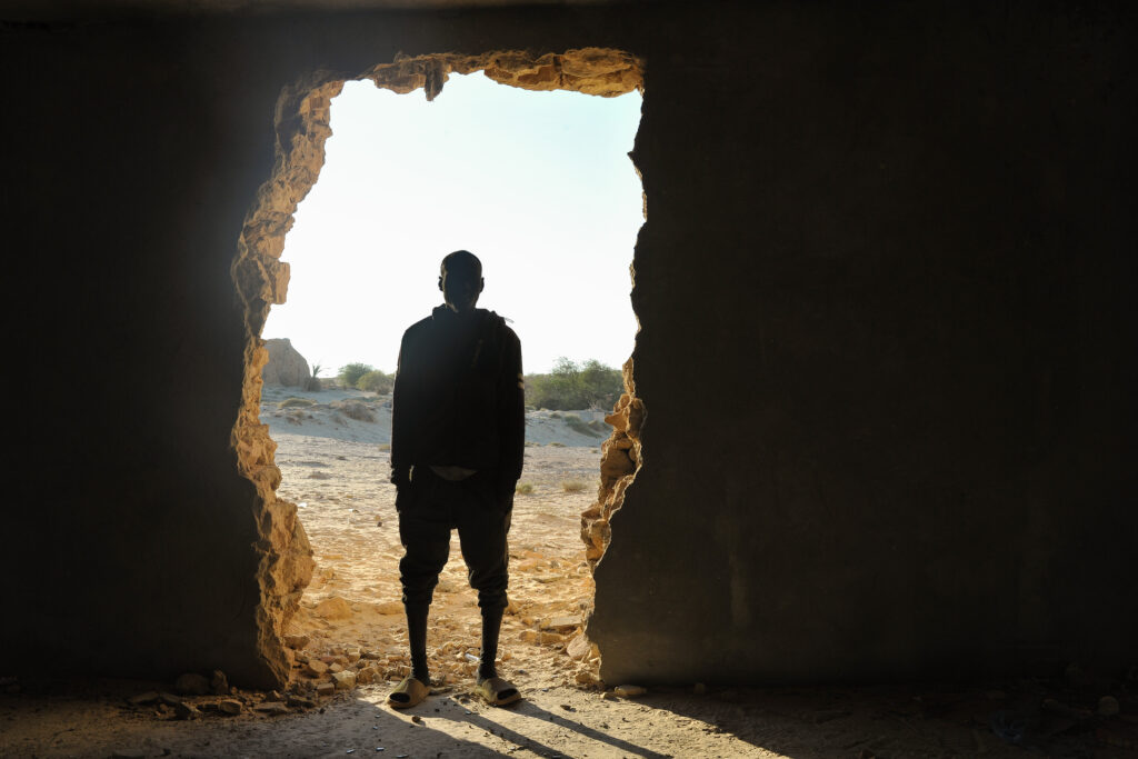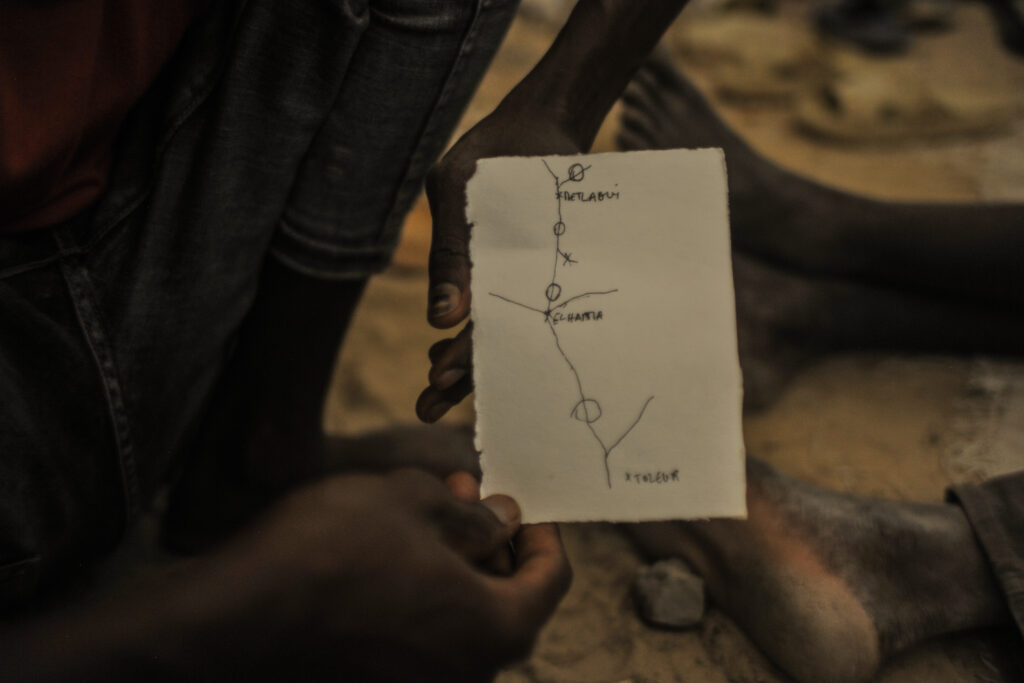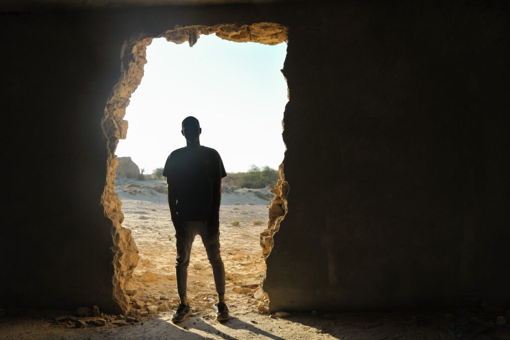 Depuis trois jours, nous avons trouvé refuge dans un vieux bâtiment et nous nous cachons dans un coin. Nous sommes à l’extérieur d’une ville qui s’appelle Tozeur. C’est un homme qui nous l’a appris. Il est entré dans le bâtiment il y a deux jours et nous a trouvé par hasard. Nous sommes sept, tous originaires de Gambie. Il y a Lamine, Ousmane, El Hadji, Bouba, Madi et El Amine. Nous essayons désespérément de contacter un chauffeur pour atteindre Faks. Personne ne nous répond. Je ne le dis pas mais j’ai peur. Peur de rester bloqué ici, peur de ne pas atteindre ma destination. Mais je ne veux pas le montrer aux autres. Je suis le plus âgé et suis devenu sans le vouloir le traceur de cette horde.