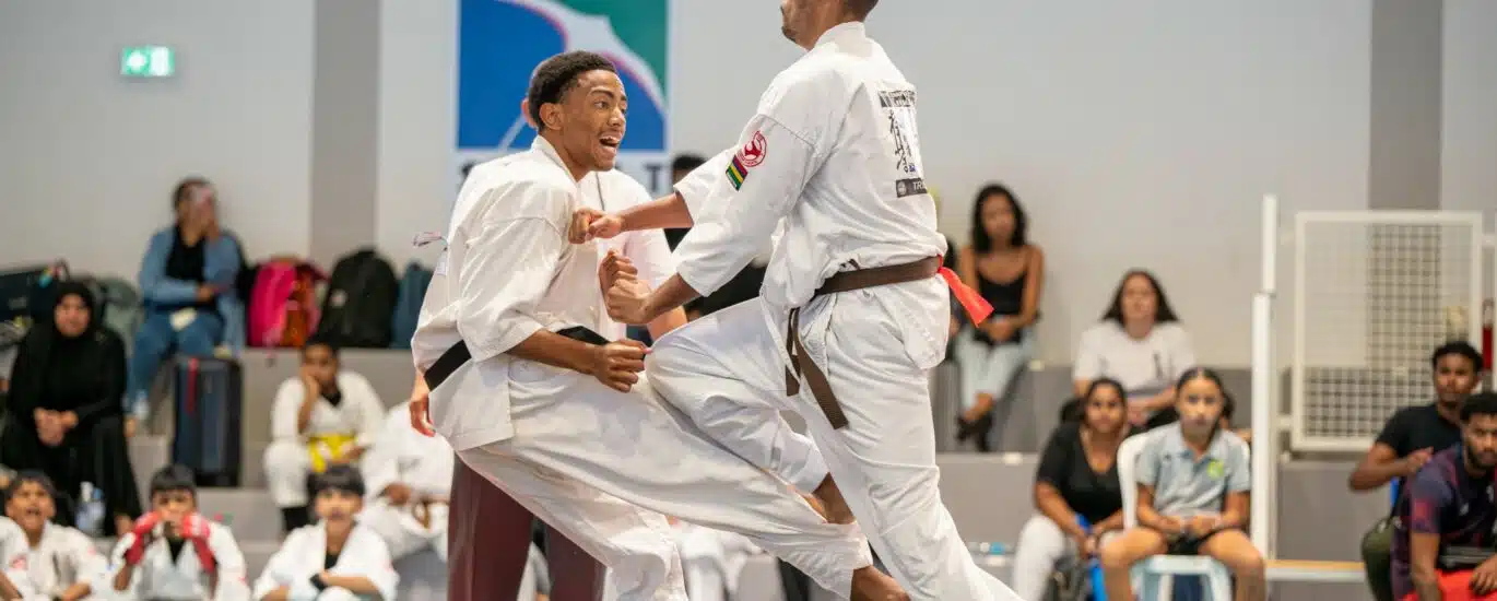 C'est dans le gymnase Daniel Narcisse au Chaudron que le club dionysien préparait depuis des mois son premier tournoi. Ils ont réuni plus de 50 combattants de 4 clubs réunionnais, dont 16 jeunes venus de Maurice. « La dernière fois que j'ai combattu ici, c'était il y a 10 ans » affirme Ambre, organisatrice, qui pratique le karaté depuis ses six ans. Elle a majoritairement combattu à l'étranger, pour les championnats d'Europe, pour les mondiaux ou à Maurice dans des tournois de plus petite échelle. Cette fois-ci, c'est son club qui organise, « pour faire profiter petits et grands ». Cérémonie d'ouverture, dossard individuel, groupe de maloya, 4 juges de coin, un arbitre central, démonstration de casse, l'évènement se voulait complet et semblable aux autres compétitions internationales.