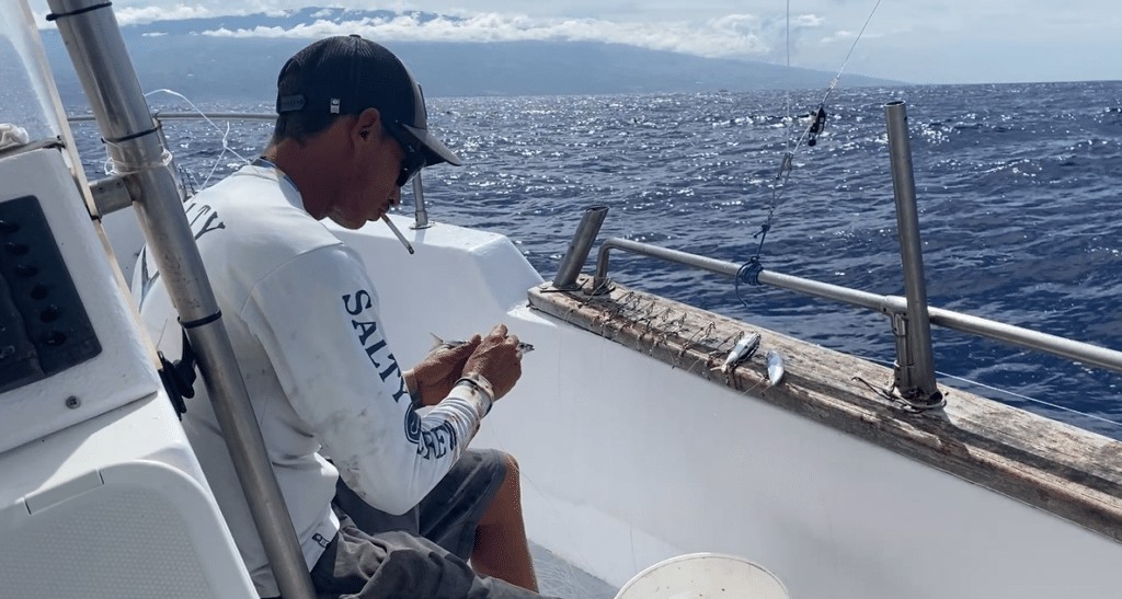 Steven Atyasse prépare les appâts pour la pêche à la main