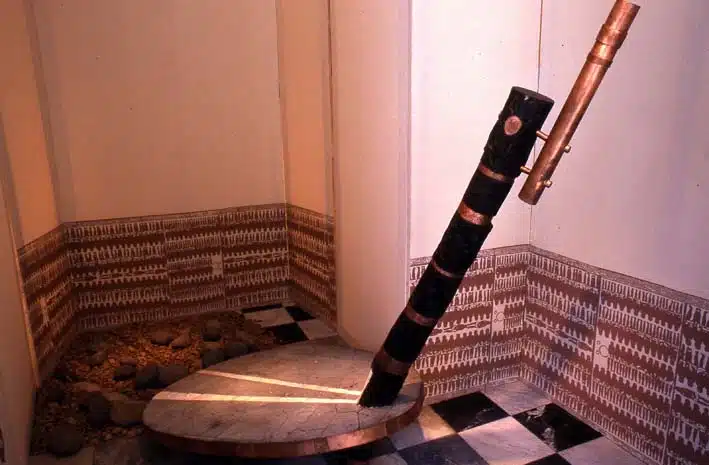 Alain Séraphine, Sans titre, 1997, bois d’ébène, cuivre, coraux, béton, 168 x 102 x 200 cm. Coll. Artothèque du Département