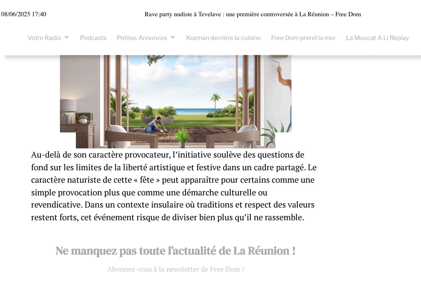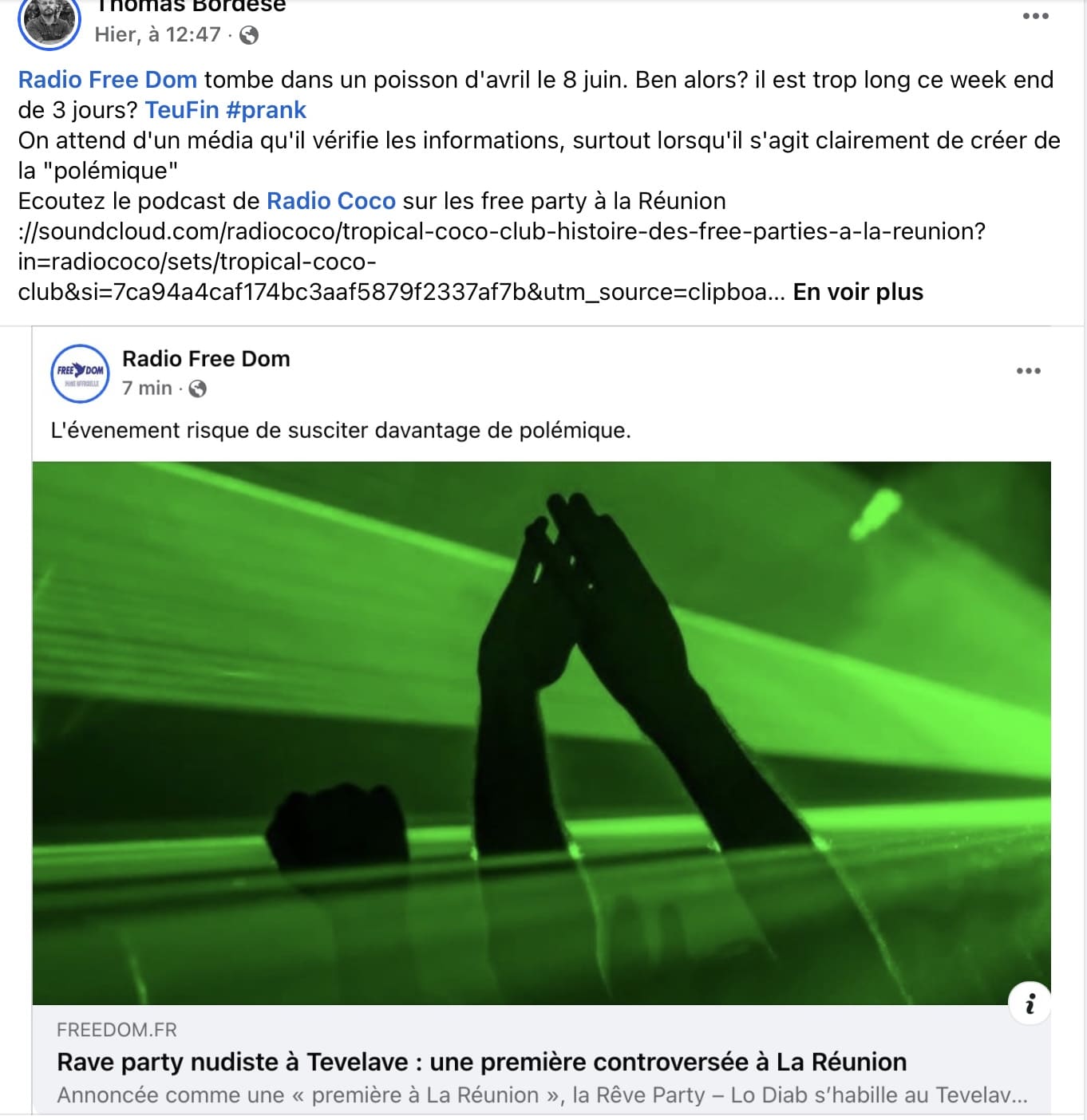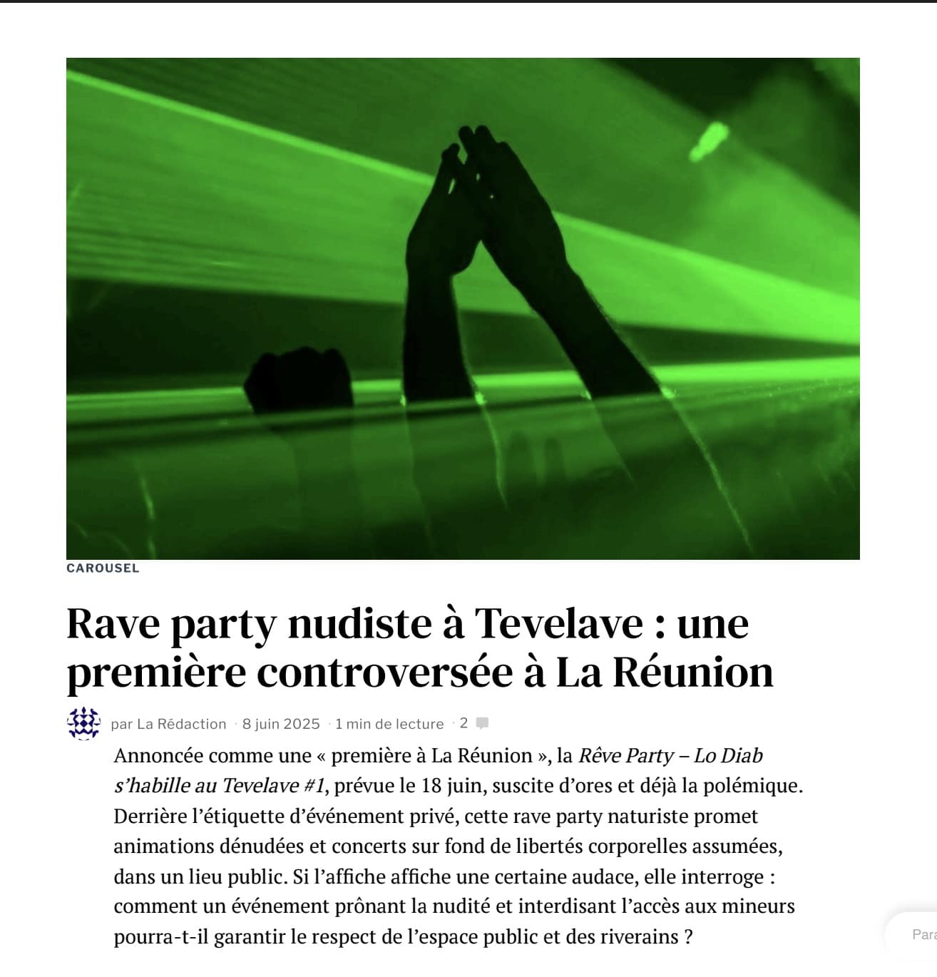Radio Freedom, sur son site internet, s’en émouvait dimanche 8, parlant tout à fait sérieusement pour cet événement de « première controversée à La Réunion » et de s’inquiéter du bruit pour les riverains (Ndlr : rares au Tévelave) ainsi que de « provocation dans un contexte insulaire où traditions et respect des valeurs restent forts ».