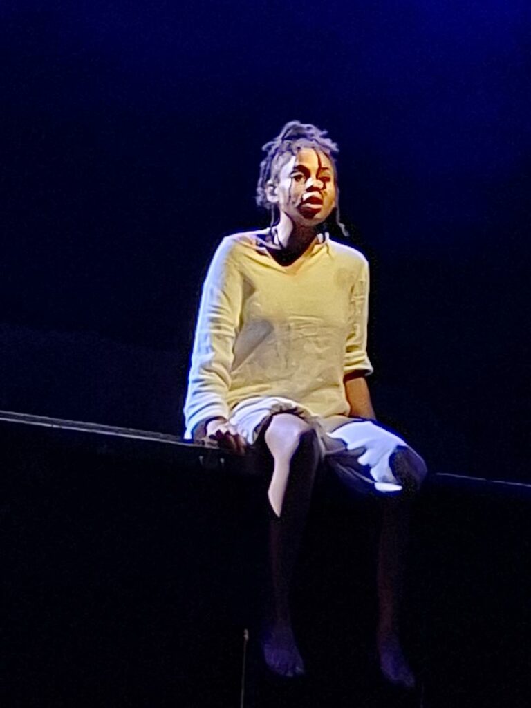Ce qui frappe d’abord, c’est la tenue. Rien n’est laissé au hasard. Rien n’est lâché. Tout est tenu du début à la fin. La scène est nue, ou presque. Pas de décor inutile. Pas de surcharge. Pas de distraction. Ce choix n’est pas esthétique au sens décoratif. Il est fonctionnel. Il oblige à regarder les corps, les déplacements, les regards. L’espace devient une contrainte. Une forme d’enfermement visible sans être surlignée. Les enfants s’y déplacent comme dans un cadre qui les dépasse. Ils montent, ils descendent, ils se regroupent, ils se dispersent, mais toujours dans une logique qui semble les contenir. Rien n’est libre. Rien n’est relâché. Cette sensation, elle passe sans discours. Elle s’impose.