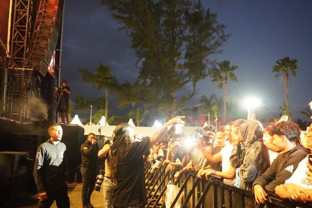 Sur la grande scène, c’est Pix’L qui a inauguré cette dernière soirée de festivités. Quand il arrive sur la scène, le public chante son gimmick « ou koné ki sa i lé kan ou entend ». Dans son ensemble sombre, dès le départ il chauffe la foule et rappelle son engagement pour la culture réunionnaise. « On m’a dit que pour être produit en France, 75% de mes chansons devaient être écrites en français c’est ce qui m’a inspiré Remparts, languet son marraine ! » Un concert qui a réuni plusieurs tranches d’âges, qui ont toutes chantées en cœur son tube Alé Aou.