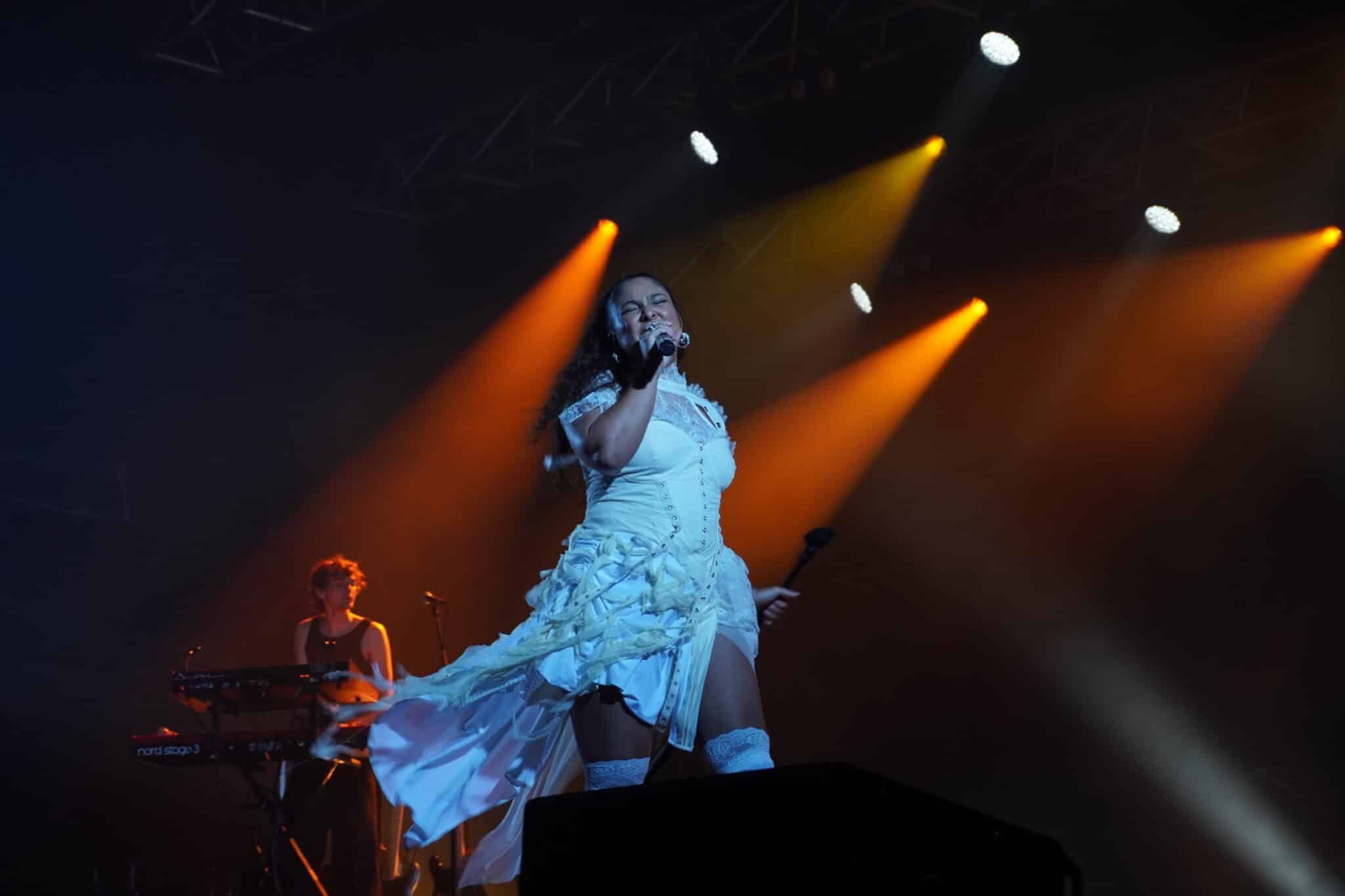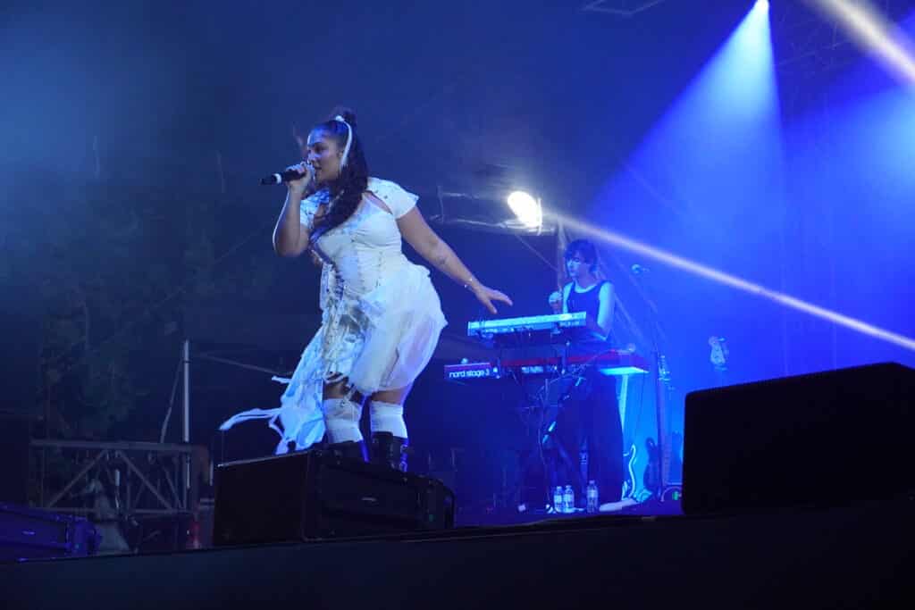 Après Pix’L, c’était au tour de Chilla de prendre place sur la scène Poudrière, plus petite. La rappeuse d’origine malgache découverte avec son morceau engagé Si j’étais un homme en 2017 a essuyé quelques problèmes techniques au début qu’elle a surmonté avec humour. Pour la suite du concert, le public s’est transformé en chorale pour reprendre des titres de son dernier album 333 sorti en septembre 2024. Un concert interactif pour initiés et non-initiés de cette artiste phare du rap féminin en France.
