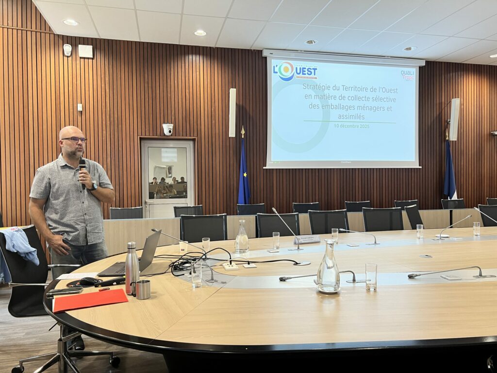 Tout d’abord, Nicolas Guérin, directeur de la Gestion des Déchets et de l’Errance Animal au Territoire, de l’Ouest, a présenté les actions de la collectivité en matière de tri des déchets. ménagers recyclables (emballages en mélange et le verre). Il est notamment revenu sur les équipements mis à disposition des ménages et services fournis aux producteurs de déchets (déchèteries), la gratification du geste de tri, via l’application Triali. Son intervention s’est achevée sur le sujet sur l’Extension des Consignes de Tri à tous les emballages en plastique qui sera déployée au 1er janvier 2026, conformément à la LOI AGEC.