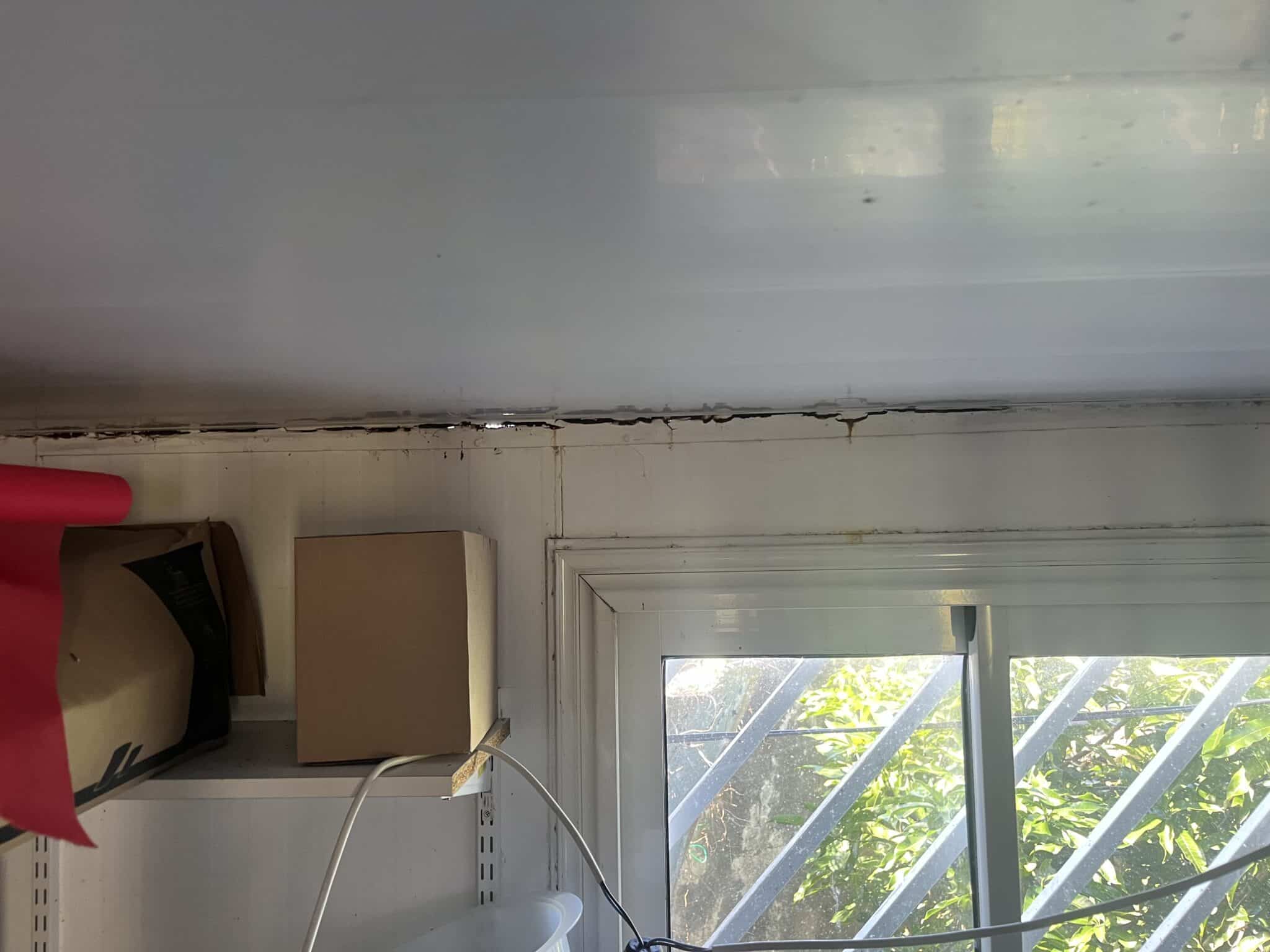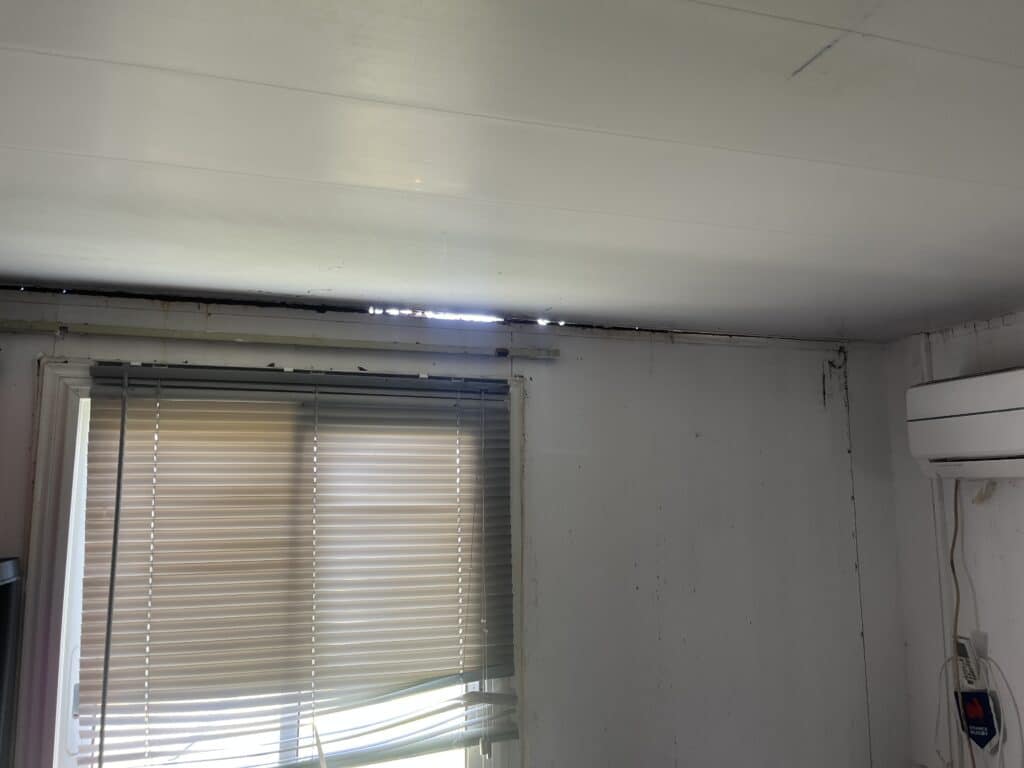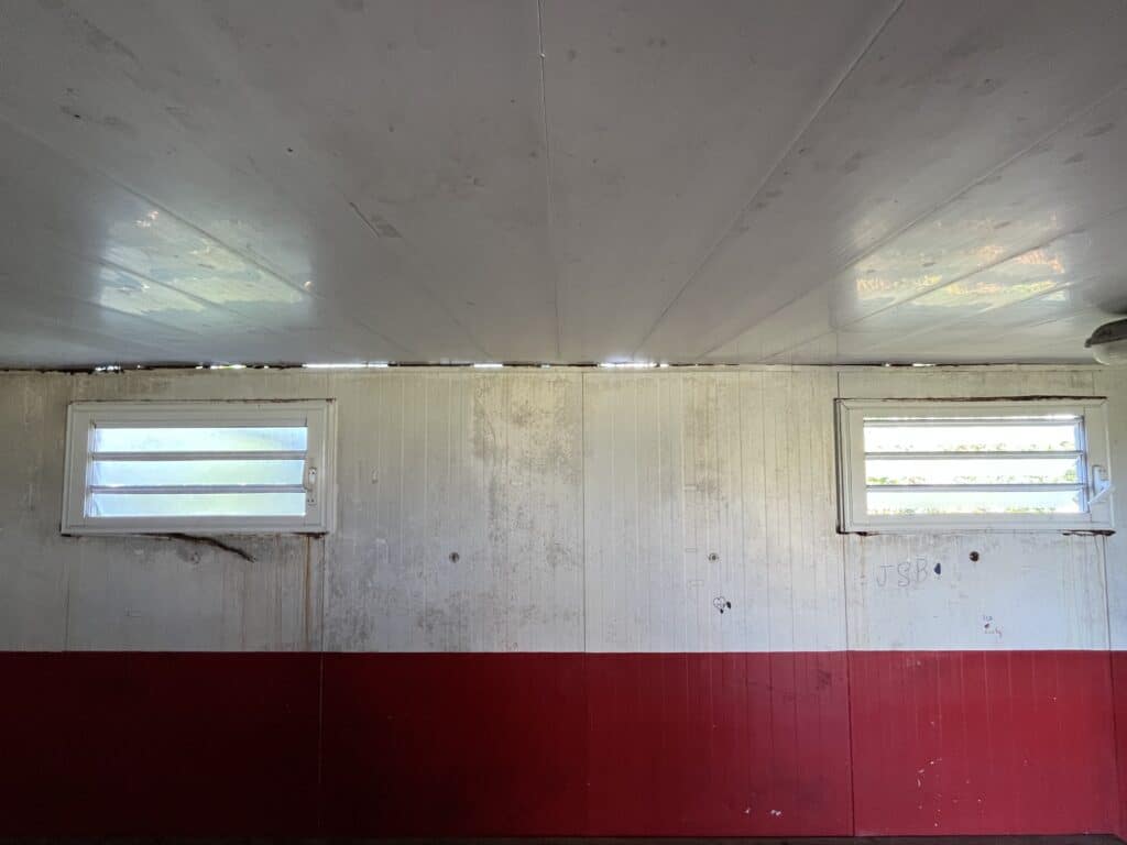 Mis à part l’éclairage, d’autres éléments du stade Lucien Simone ont été endommagés par la pluie et les vents violents de Garance. Le club house de la JSB, un petit local dans un algeco, s’est vu submergé pendant les fortes pluies. Le plafond s’est décroché à plusieurs endroits et une façade s’est décollée. Les locaux appartiennent à la mairie, c’est donc à eux de s’occuper des réparations. « Le toit a dû se soulever, et heureusement ça s’est pas arraché c’est juste retombé. On n’a rien de valeur mais bon, c’est pas très sécurisé maintenant quoi ».