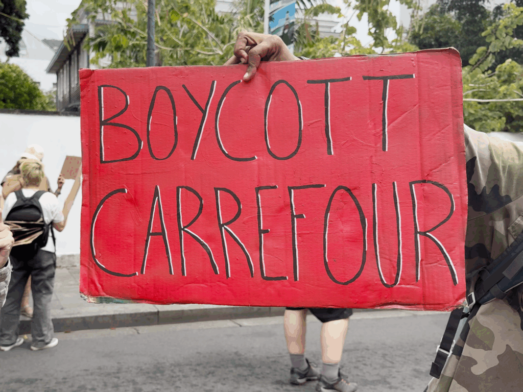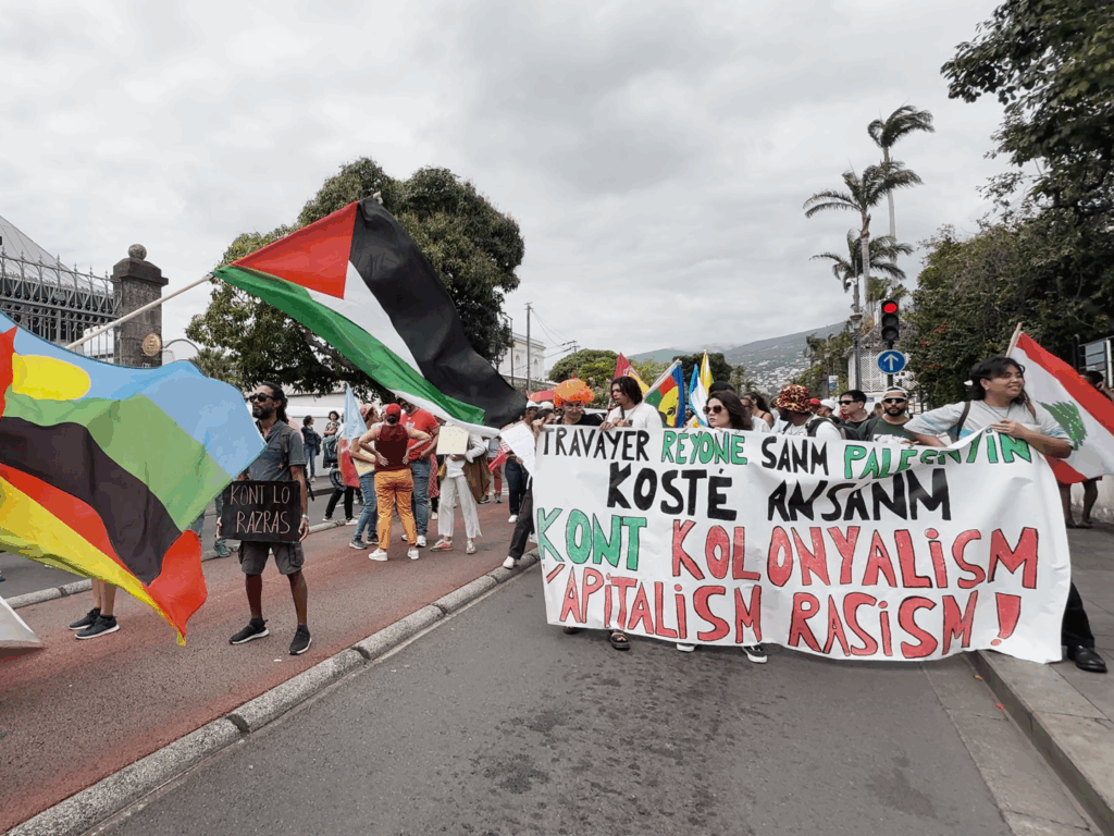 Le collectif Réunion Palestine a également pris la parole pour élargir la contestation à d’autres luttes internationales : « Cibler les colons complices, comme le groupe Carrefour… et ici le groupe GBH parce qu’il ne faut pas oublier que les colons de la Réunion font les prix chers. »