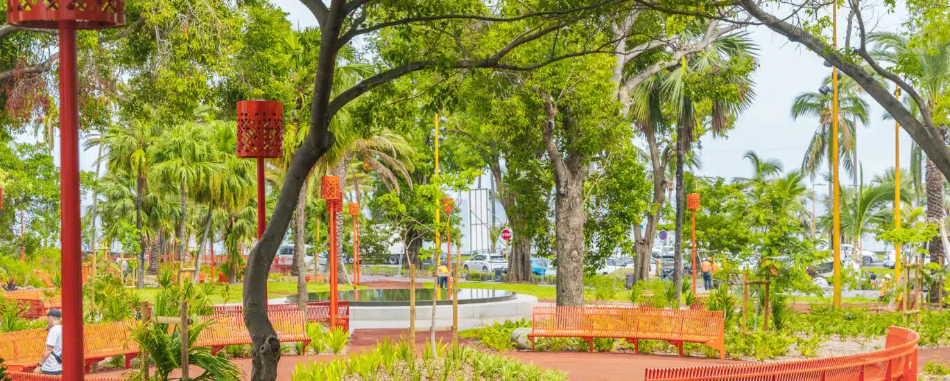 A la sévérité du regard de Mahé de la Bourdonnais, la mairie de Saint-Denis a préféré des bancs orange, des plantes endémiques et le bruit de l’eau. Le juge des référés lui a donné raison.