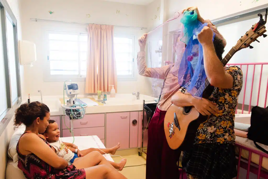 S’occuper quotidiennement d’enfants hospitalisés, parfois pour des durées très longues, ce n’est pas toujours facile. Les comédiens-clowns (ils sont toujours deux) interviennent donc en pédiatrie deux fois par semaine (mardi-vendredi à Saint-Denis, mardi-jeudi à Saint-Pierre) et parfois au pôle mère-enfant du CHU de Saint-Pierre. Ils aident ainsi les enfants et leur famille à mieux appréhender l’hospitalisation et la maladie et apportent joie, rires, rêves. Cela soulage aussi un peu les soignants qui, parfois, assistent à une partie des interventions.