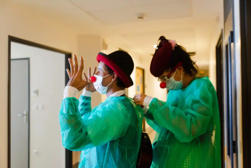 - Dans le processus de sélection de nos clowns professionnels, nous attachons une grande importance à plusieurs critères pour garantir la qualité et l’efficacité de nos interventions. Ces critères incluent leurs compétences artistiques (musique, chant, jonglerie, …) et leur capacité à s’adapter à un environnement hospitalier parfois complexe et changeant. Nous recherchons des comédiens ayant une expérience pertinente dans le domaine artistique, ainsi qu’une passion sincère pour notre mission et ses valeurs. Les candidats doivent également être en mesure de travailler en équipe puisqu’ils interviennent toujours en duo et font partie intégrante du personnel soignant. »