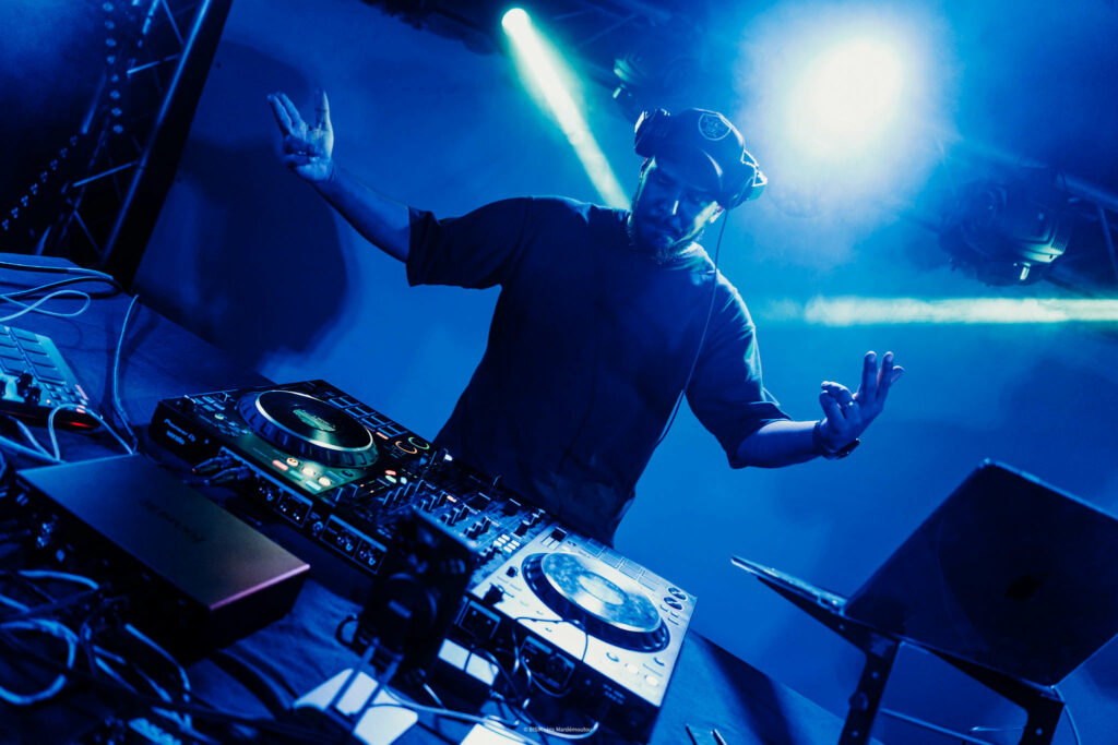 C’est Cappuccinegro qui ouvre la soirée et donne le ton avec un DJ set aussi éclectique qu’inspiré : Abstract, hip-hop et grooves urbains s’entremêlent avec une fluidité déconcertante. Les basses lourdes vibrent dans les corps, les hochements de têtes se synchronisent et les mouvements de danses imitent les pulsations du beat.