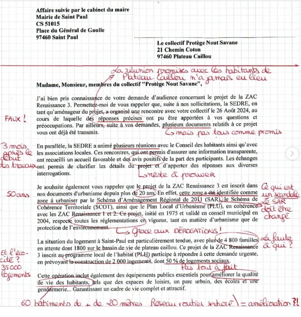 Les opposants au gigantesque projet immobilier de la savane de Plateau-Caillou ont déplacé leur combat jusque dans la mairie de Saint-Paul. En l’absence du maire, ils ont rencontré quatre adjoints.