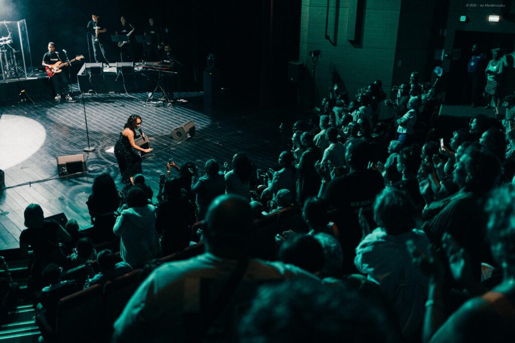 Une atmosphère électrique règne dans la salle, et c’est dès les premières notes de “Batt Pas Si Out l’Estomac” que déjà, les refrains sont repris en chœur par une salle conquise. C’est un voyage dans le temps : un retour aux racines avec ses premiers succès, un clin d’œil à son parcours et un pas ferme vers l’avenir. Portée par des musiciens de talent, Ryan, Malik, Ulrich, Mickael, Cléo, Laurent, Jc, Giovanny et Eloïse, choriste complice, Sega”el ouvre la soirée avec une intensité qui ne faiblira jamais, pétillante, radieuse et profondément connectée avec son public.