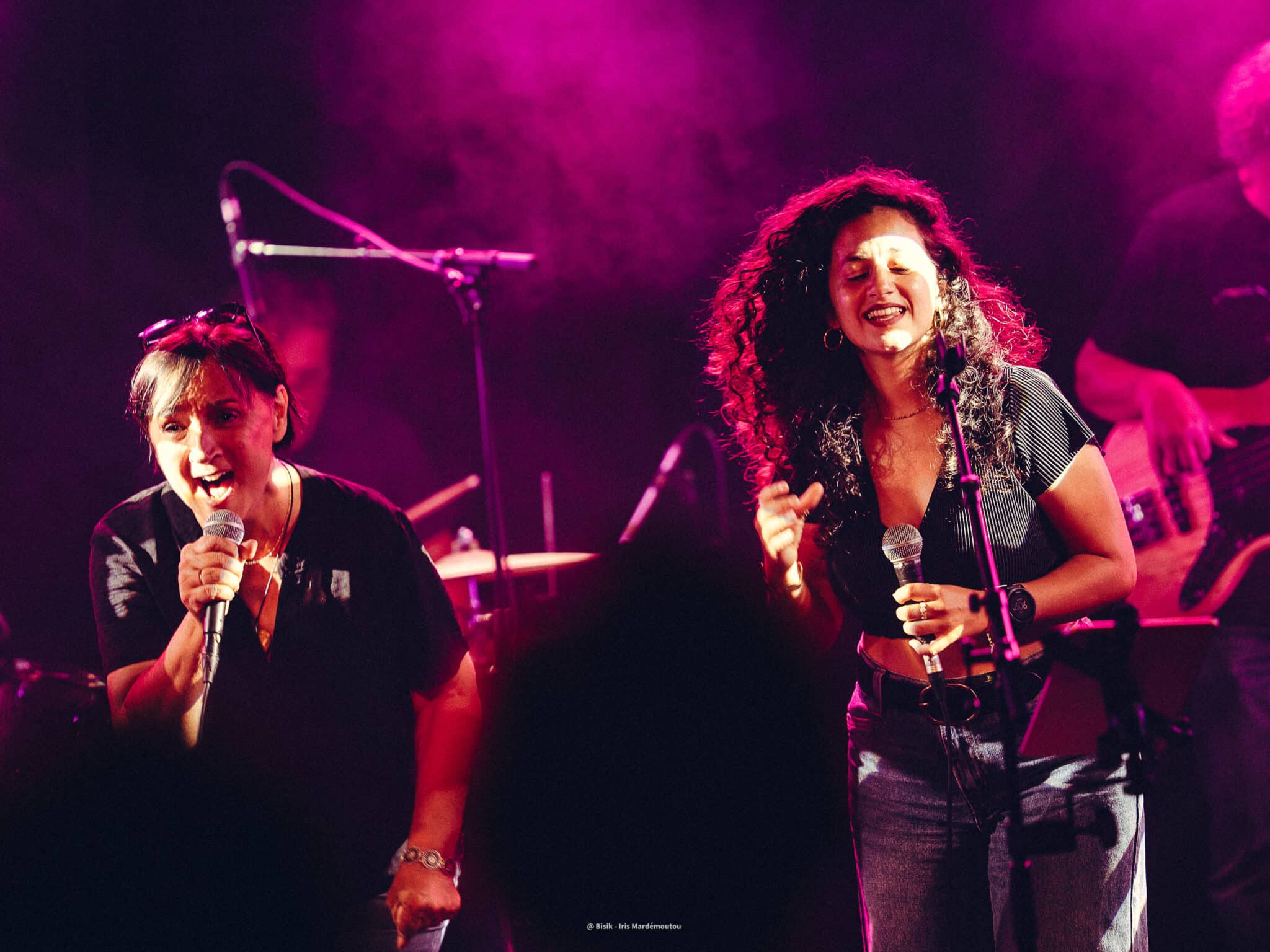 Le Challenge terminé ? Qu’à cela ne tienne, après une pause de 15 minutes pour remettre les prix et se désaltérer, La biscotte de la mer reprend son show, place au concert pur jus : un répertoire bien festif et survitaminé. Des seventie’s aux années 2000. Pink Floyd, Led Zeppelin, Gun N’ Roses ou Coldplay résonnent à leur tour, le clash générationnel n’est plus : les paroles fusent naturellement et la compétition s’efface. Il ne reste que la musique, le partage et la danse !