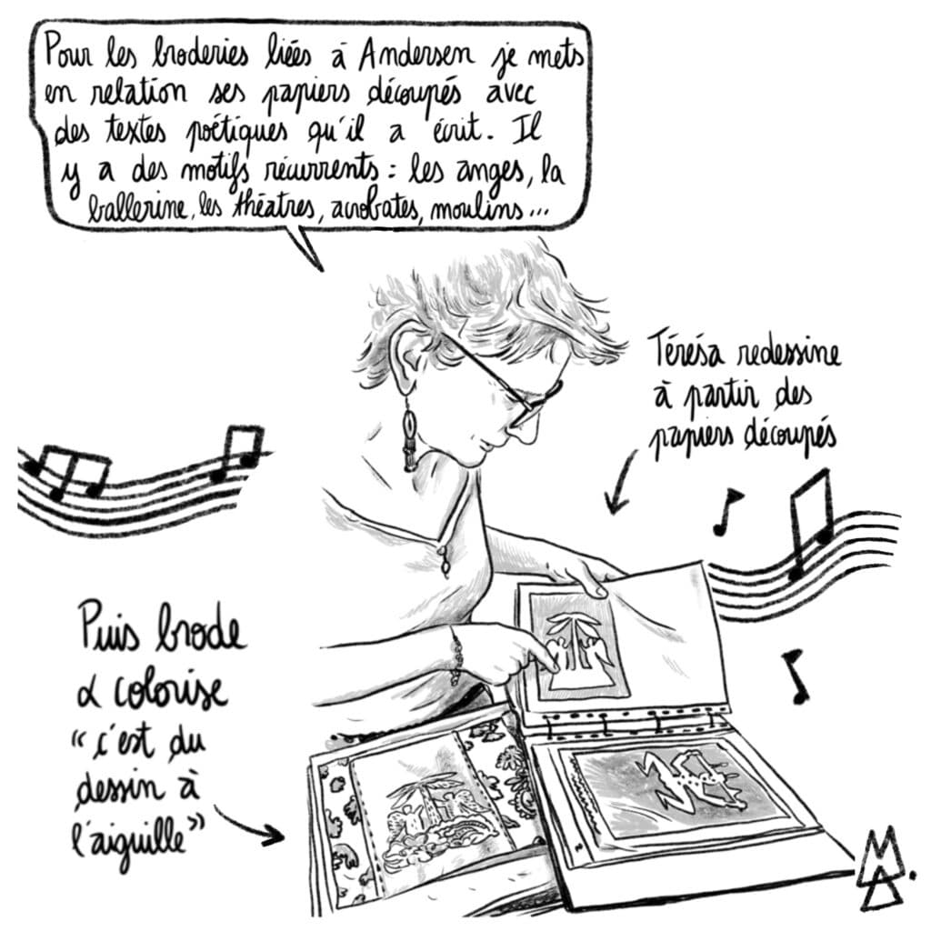 Térésa Small aborde la broderie comme un « dessin à l’aiguille ». Son exposition « PAPIRKLIP » s’inspire des papiers découpés d’Andersen couplés à des textes philosophiques de l’auteur. Le travail de Térésa Small plonge dans l’enfance, son imaginaire, ses rêveries, et une poésie qui raconte avec beaucoup de lucidité les réalités du monde. A découvrir au Banyan, centre d’Art Contemporain de la Cité des Arts, Saint-Denis (jusqu’au 1er mars 2025).