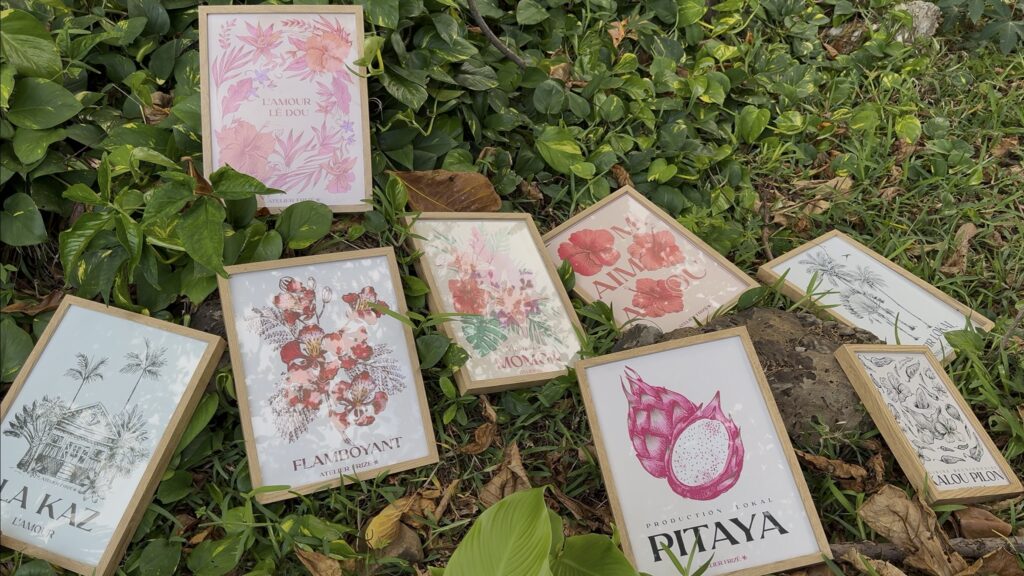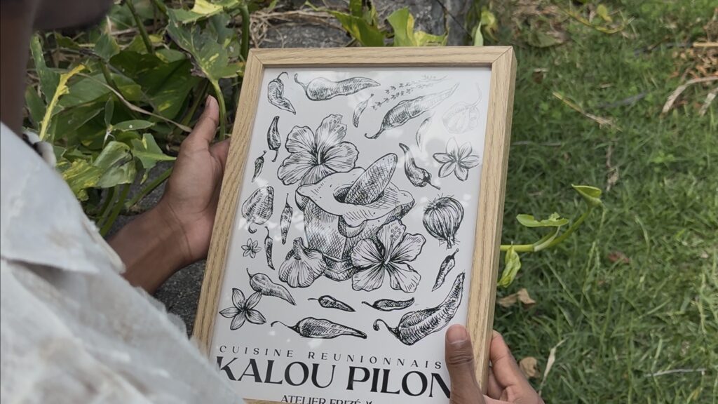 Parti comme beaucoup de jeunes pour chercher ailleurs ce qu’il avait finalement chez lui, Thomas a redécouvert La Réunion à son retour. Aujourd’hui, avec l’Atelier Frizé, il s’inspire de la cour créole et du quotidien péi pour créer des illustrations simples et authentiques. Son envie : montrer la Réunion telle qu’elle est.