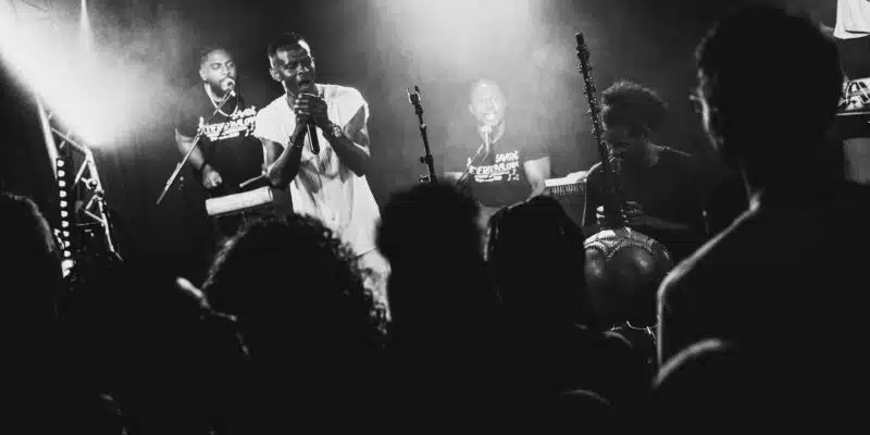 Après 30 minutes de passion, c’est Tifrid Maloya qui entre en scène, acclamé comme une famille qu’on retrouve. Wilfrid “Tifrid” Tugar, le leader charismatique d’un des groupes phares de Saint-Benoît, s’installe entouré de ses compagnons de route, bann ga la cour : Lorik Tugar, Tommy Valentin, Alan Iva, Bertrand Macatoua, Léon Peclet, Mahano Richelin et Fabien Boquet. On reconnaît cette patte singulière : un maloya d’harmonie et d’âme, qui réunit les voix autant qu’il réunit les cœurs ! D’abord avec trois titres pour ouvrir le kabar, portés par les riches harmonies vocales du groupe, avec la présence d’un N’goni qui enrichit les sonorités d’une teinte africaine, les frissons parcourent les corps, la magie est bien là.
