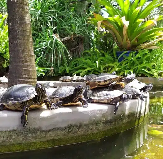 L’activité des tortues décroît au fil de la journée, une visite le matin ou en début d’après-midi est à privilégier