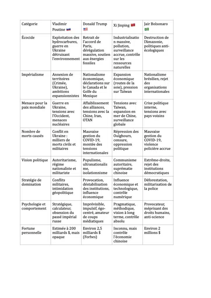 Autoritarisme, écocide, impérialisme : Comparatif des dirigeants controversés