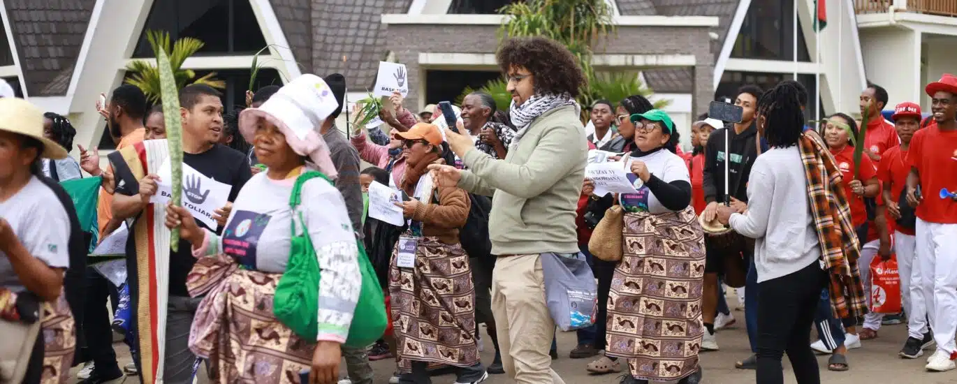 « Je ne pense pas que c’était à cause de nous… c’est juste que vraiment, la situation sociale est intenable. 80 % de la population est sous le seuil de pauvreté de 1€ par jour. » Il évoque l’empoisonnement récent d’une trentaine de personnes qui pourrait être lié aux fréquentes coupures d’électricité. « Des quartiers ont été démolis à Tamatave au profit de groupes impérialistes. A Tuléar, un projet d’extraction de terres rares va servir les intérêts américains… »