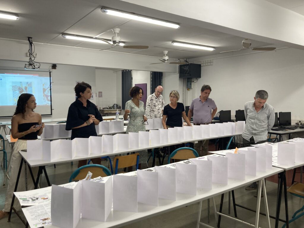 Pour juger de la meilleure maquette, aux côtés de Leeloo Collet , volontaire en service civique pour l’éducation aux médias et à l’information représentant Parallèle Sud, plusieurs officiels étaient présents : Johanna Bettex, professeure documentaliste du lycée, Delphine Colin, déléguée académique à l’action culturelle pour le rectorat, Fabrice De Peindray, directeur des formations techniques du lycée Ambroise-Vollard, Fanny Stofft , conseillère Éducation Artistique et Culturelle de la DAC, ainsi que François Vigneron chargé de missions Education Artistique et Culturelle de la Région Réunion.