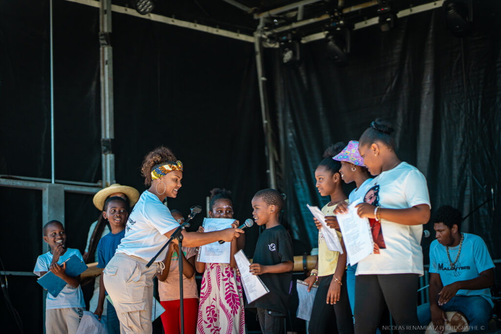 Ce dimanche 7 décembre, soley’ i pète sur la Ville de Saint-Benoît. Autour de la Salle Gramoun Lélé, le Village du Festival se réveille : des enfants qui jouent, des familles qui déambulent entre les stands des associations et des artisans présents, la musique bat son plein : une ambiance de dimanche idéal, lumineux, généreux, avec un programme foisonnant et éclectique.