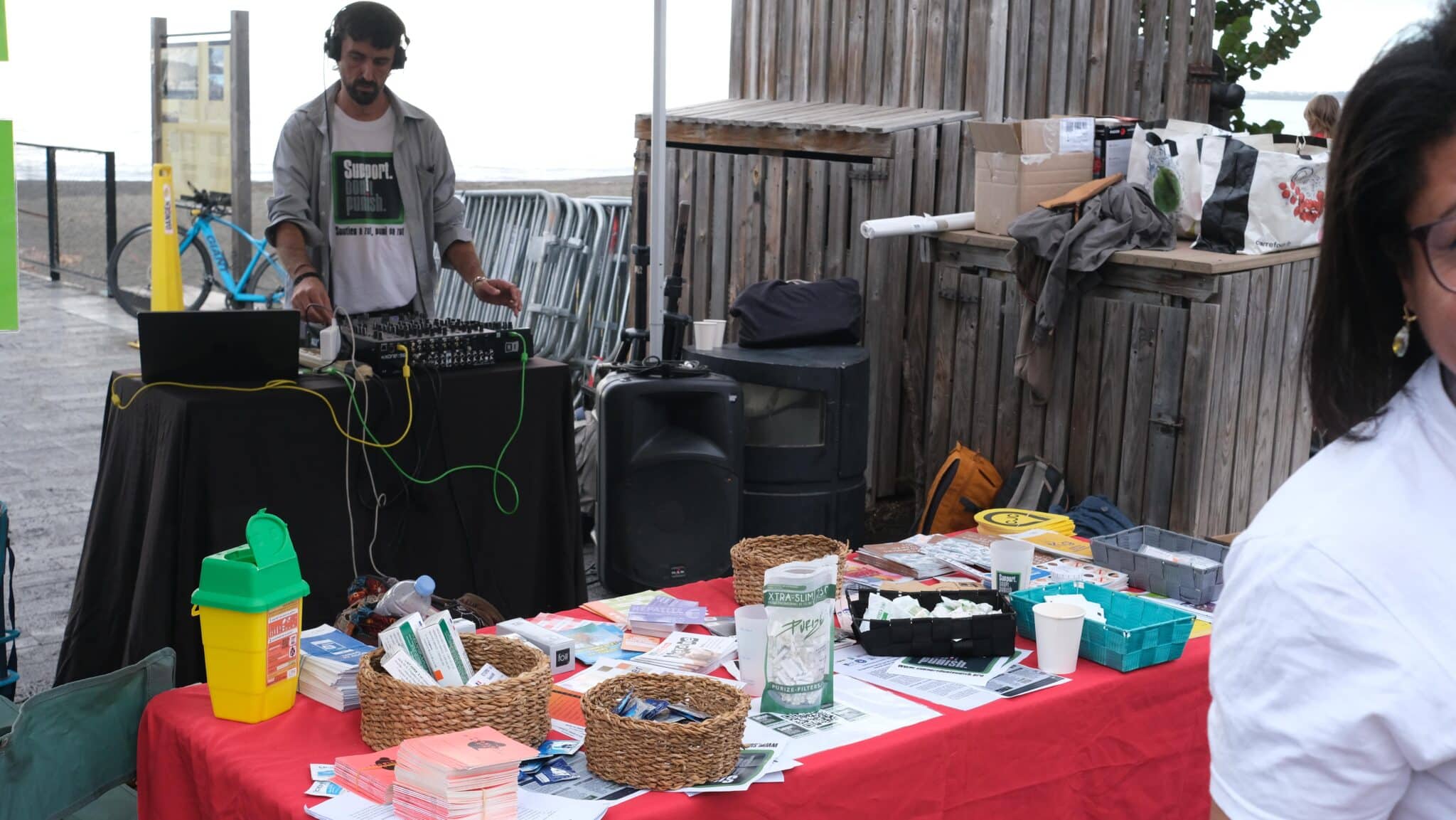 Un stand chargé de douceurs sucrées pour attirer le chaland, ainsi que des matériels d’hygiène et de réduction des risques habituellement distribués par l’association Effet en Fêt’, trônait toute la journée devant le débarcadère de Saint-Paul.