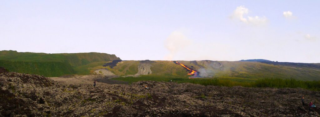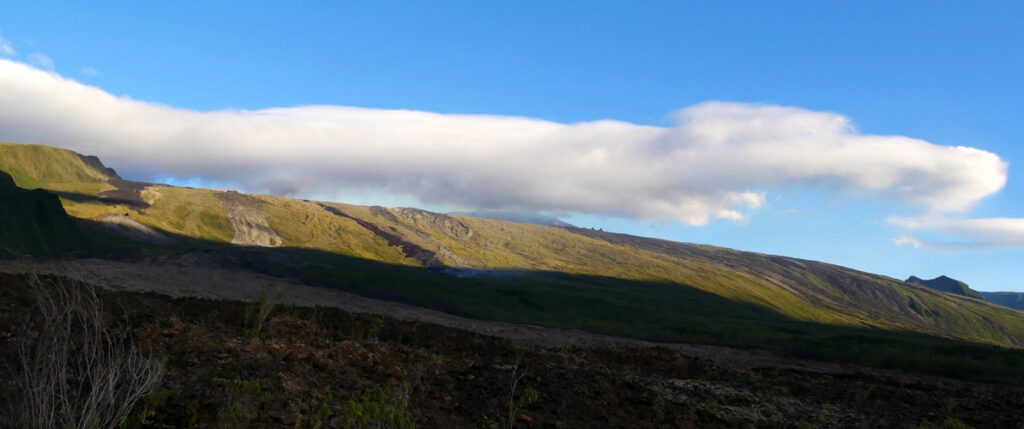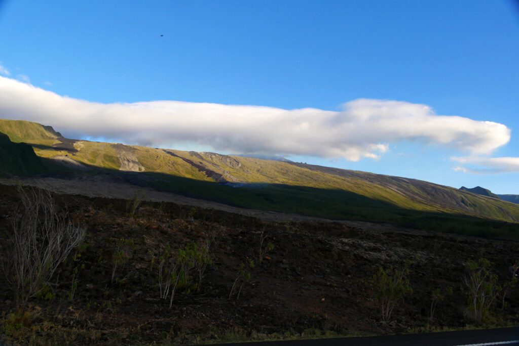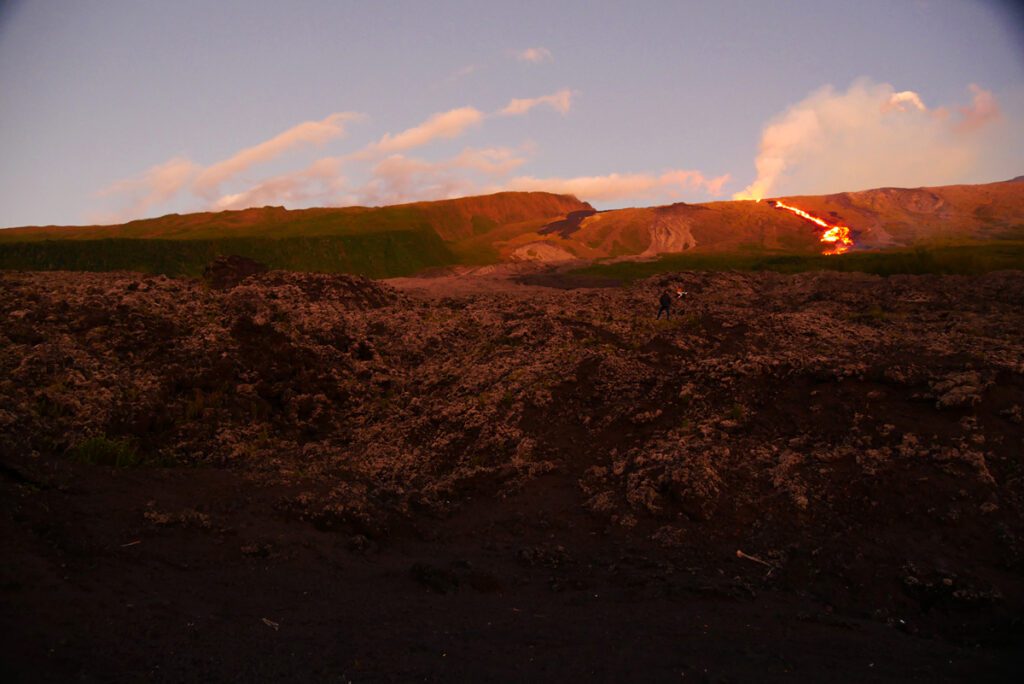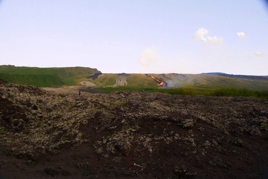 Est-elle éteinte ? Lorsque nous retrouvons un chemin plus carrossable, nous croisons deux photographes vidéastes chevronnés. Ils nous confirment que, en effet, ils viennent d’assister à « la fermeture ». « A une heure et demir de marche, vous aurez une vue sur la dernière faille active, mais il faudrait compter au moins 5 heures supplémentaires pour l’atteindre »…