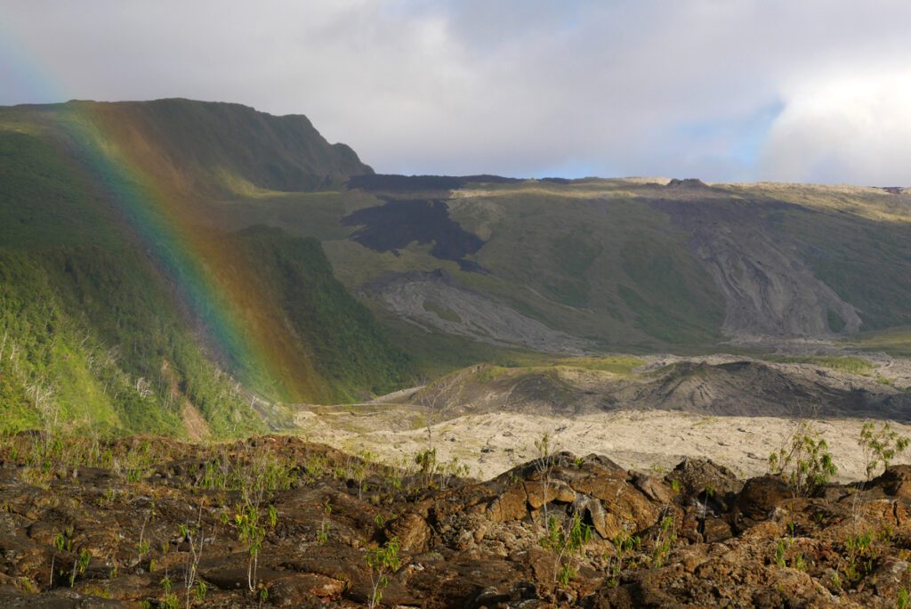 Avons-nous échoué ? Pas du tout. Il faut accepter la Fournaise telle qu’elle veut bien se présenter. A la place du feu d’artifice magmatique, le volcan nous a dévoilé l’âme de son « peuple ». Alors que nous cassons la croûte avant le repli, nos deux derniers explorateurs s’enquièrent de nos besoins en eau… « Si vous manquez d’eau, il y a une petite caverne derrière vous et vous repérerez une bouteille dans les rochers »…